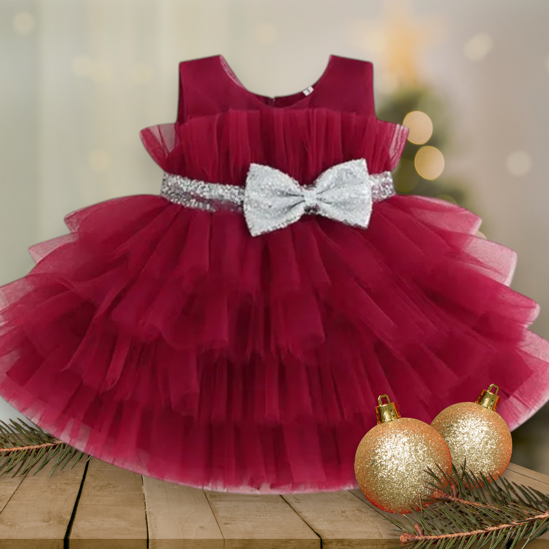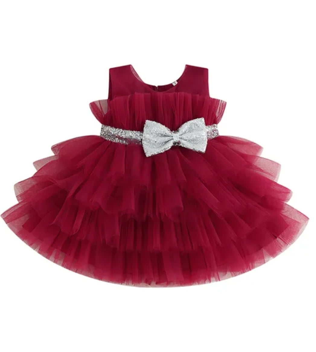 Maroon Special Occasions Dress with Silver Sequins Bow
