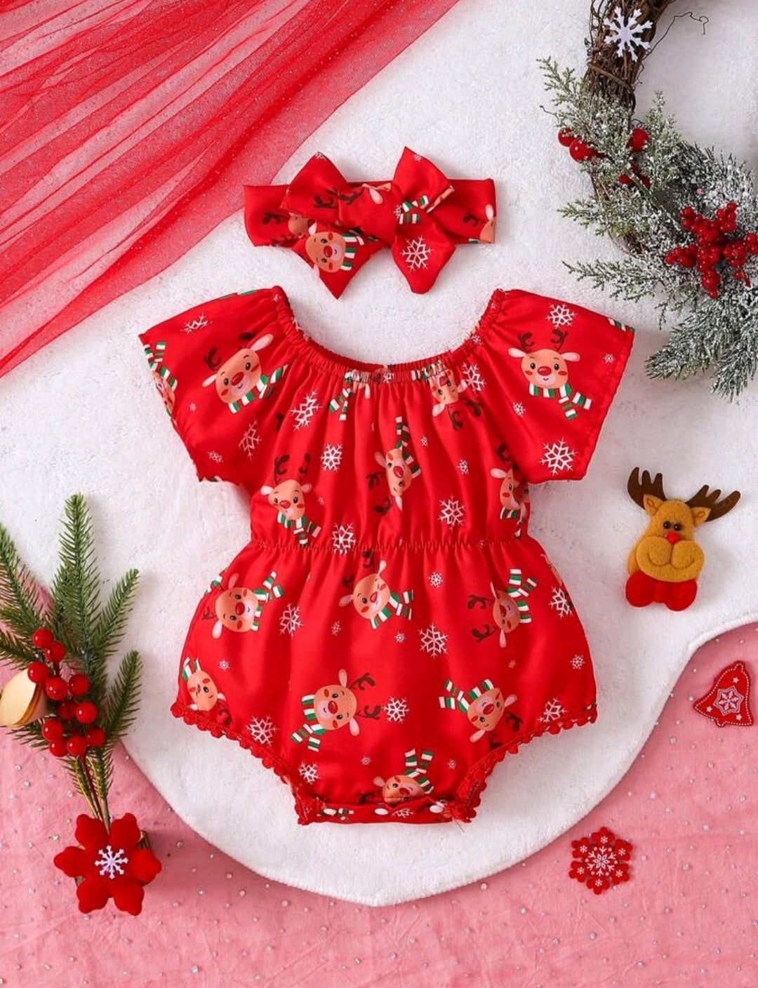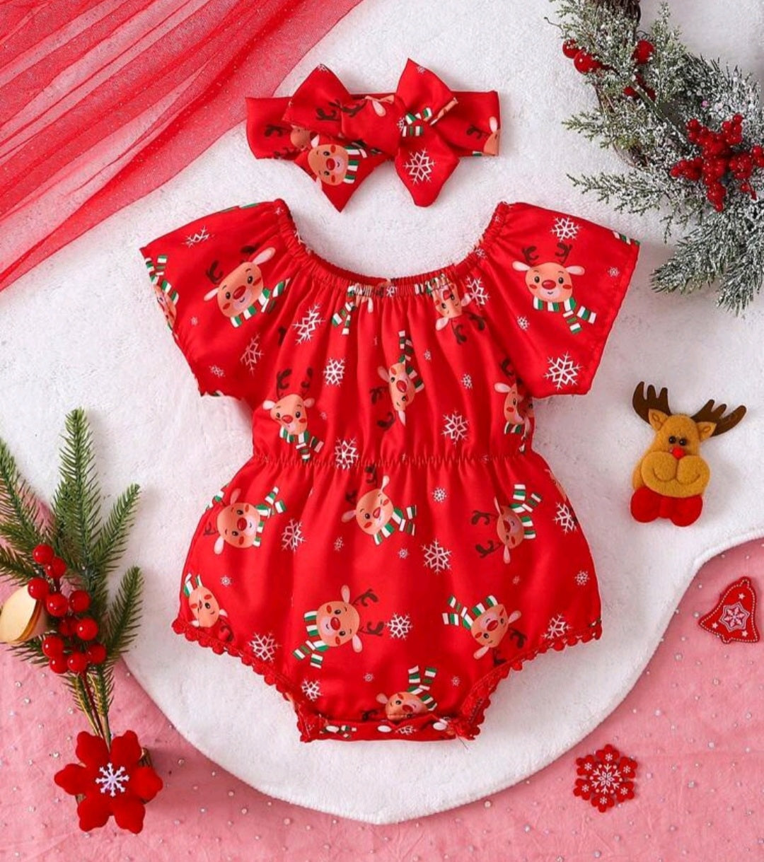 Christmas Reindeer Romper and Headband