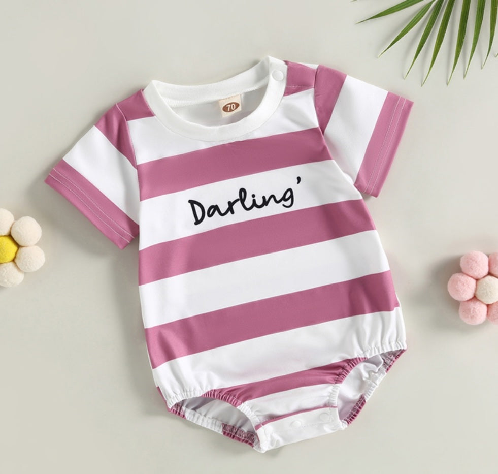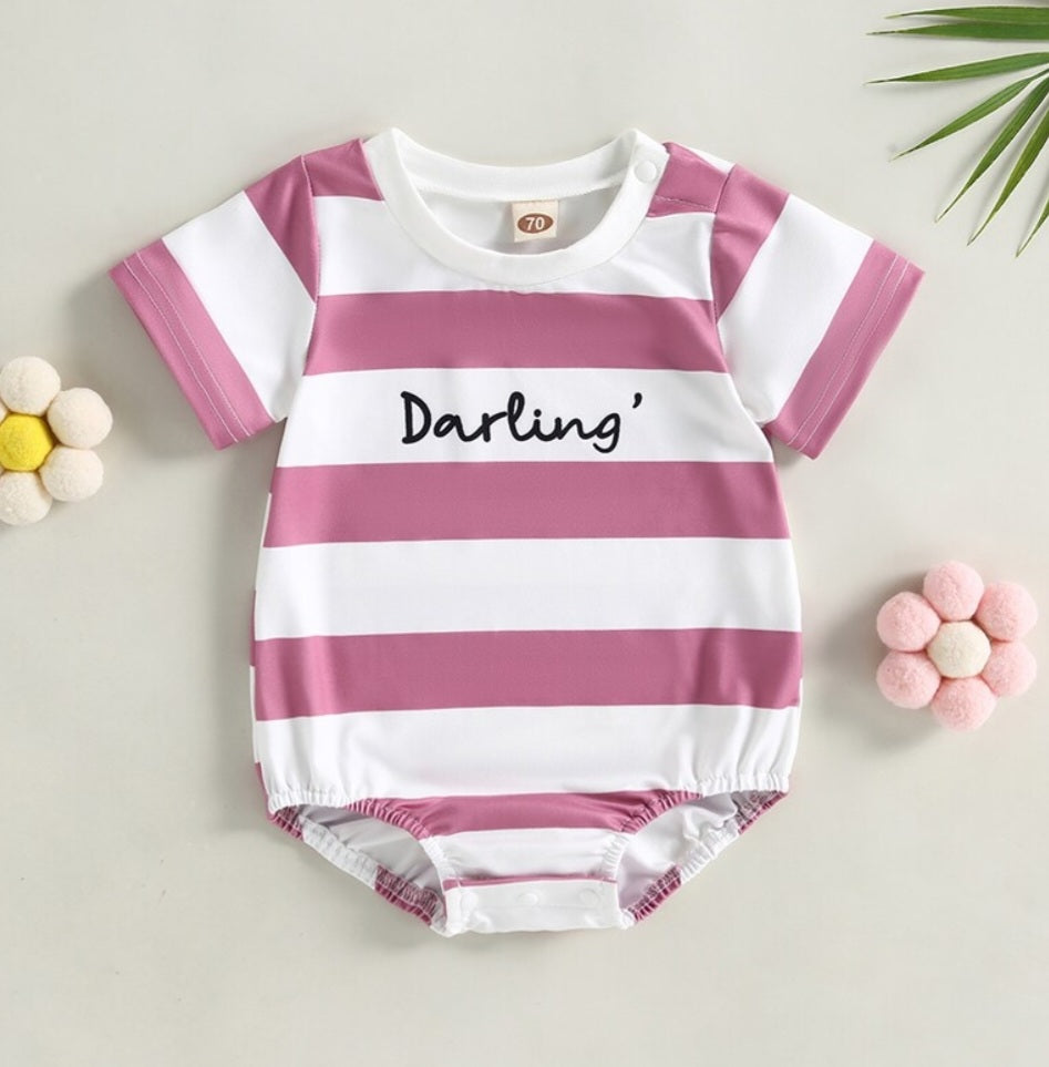 Darling Striped Romper Pink