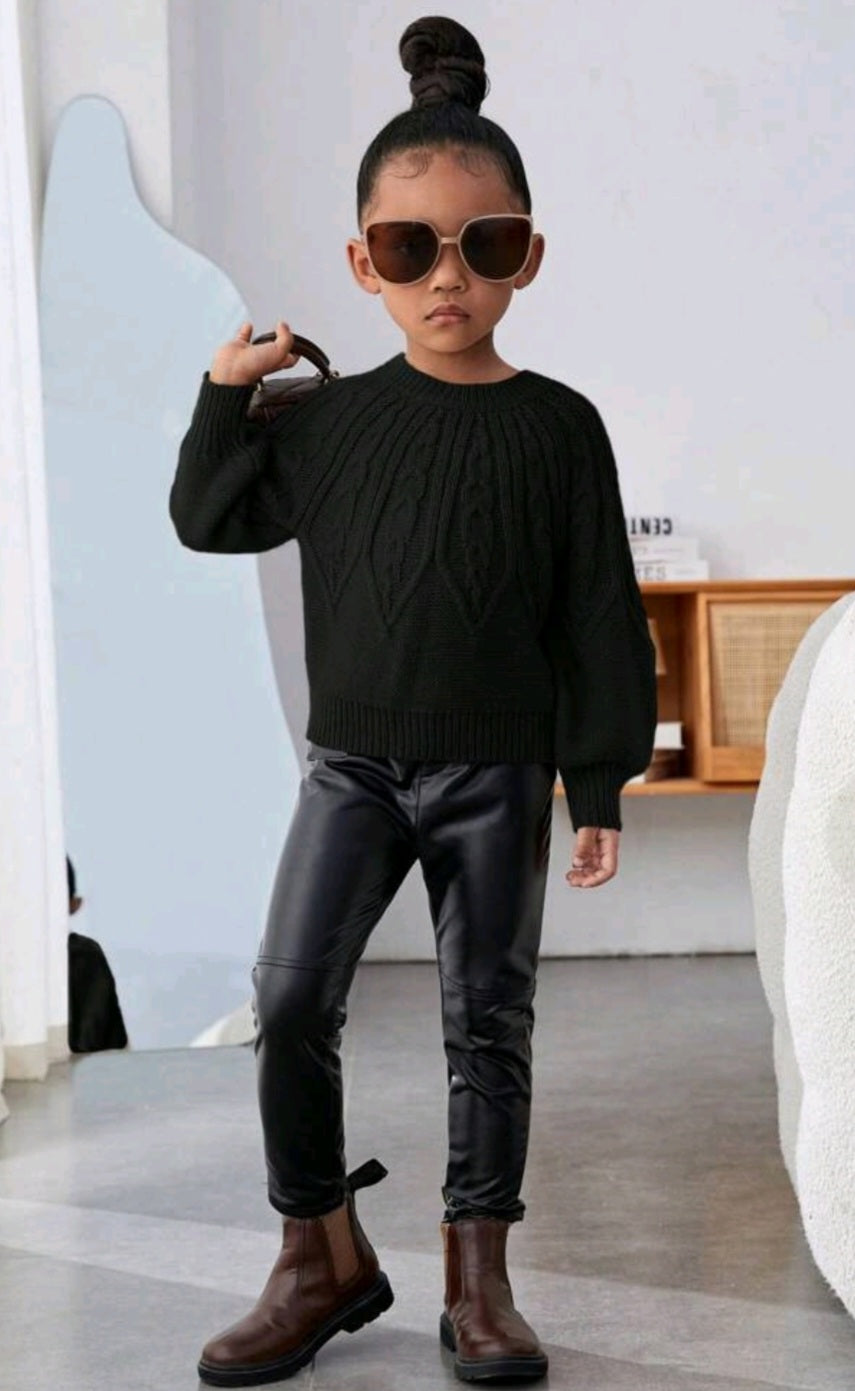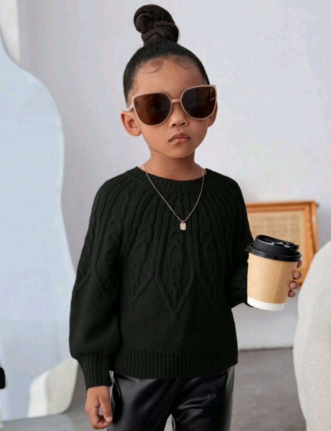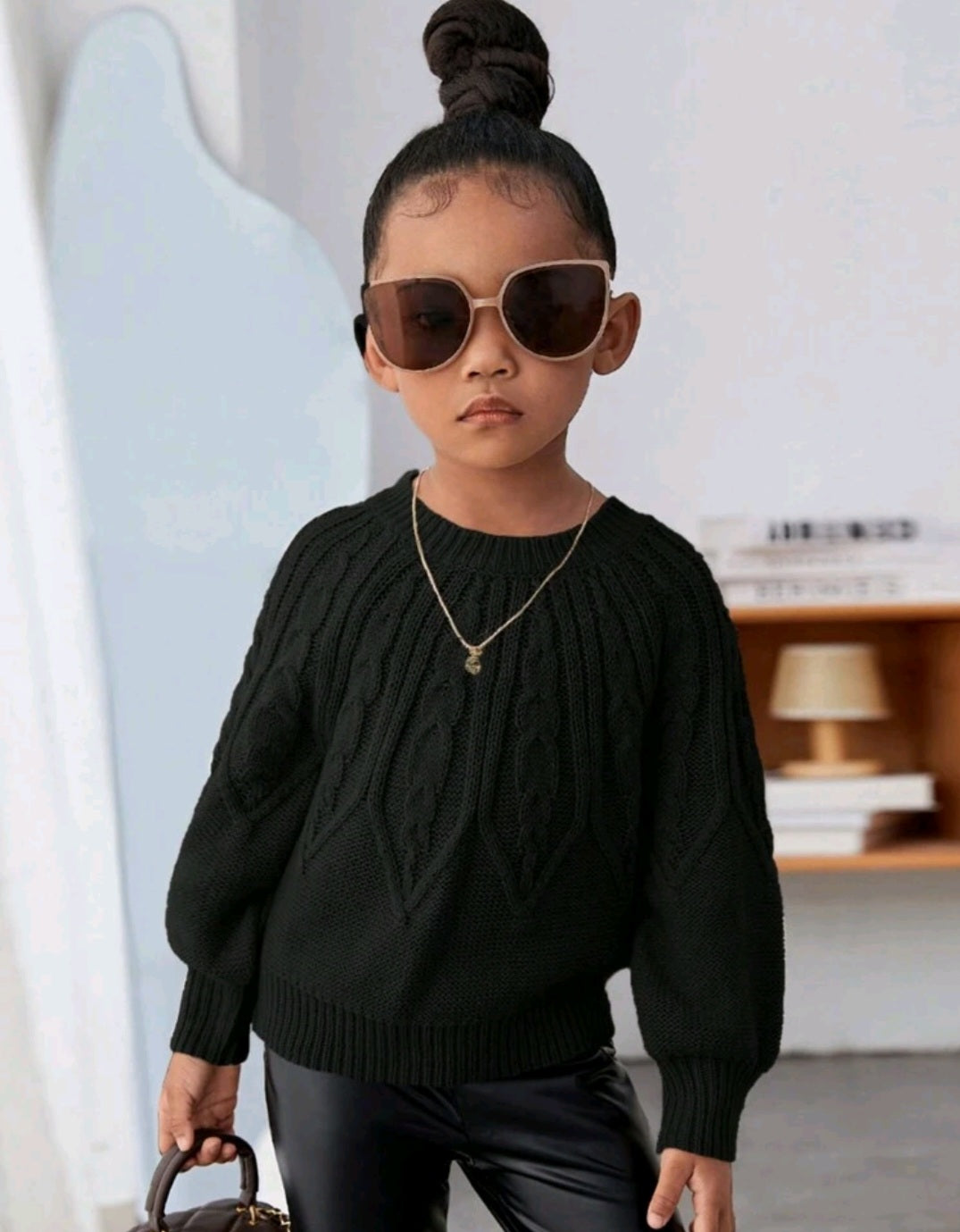 Black Crewnek Cable Knited Sweater Gender Neutral #1000216