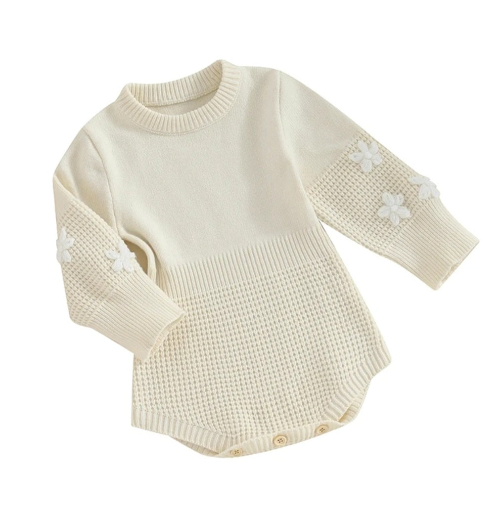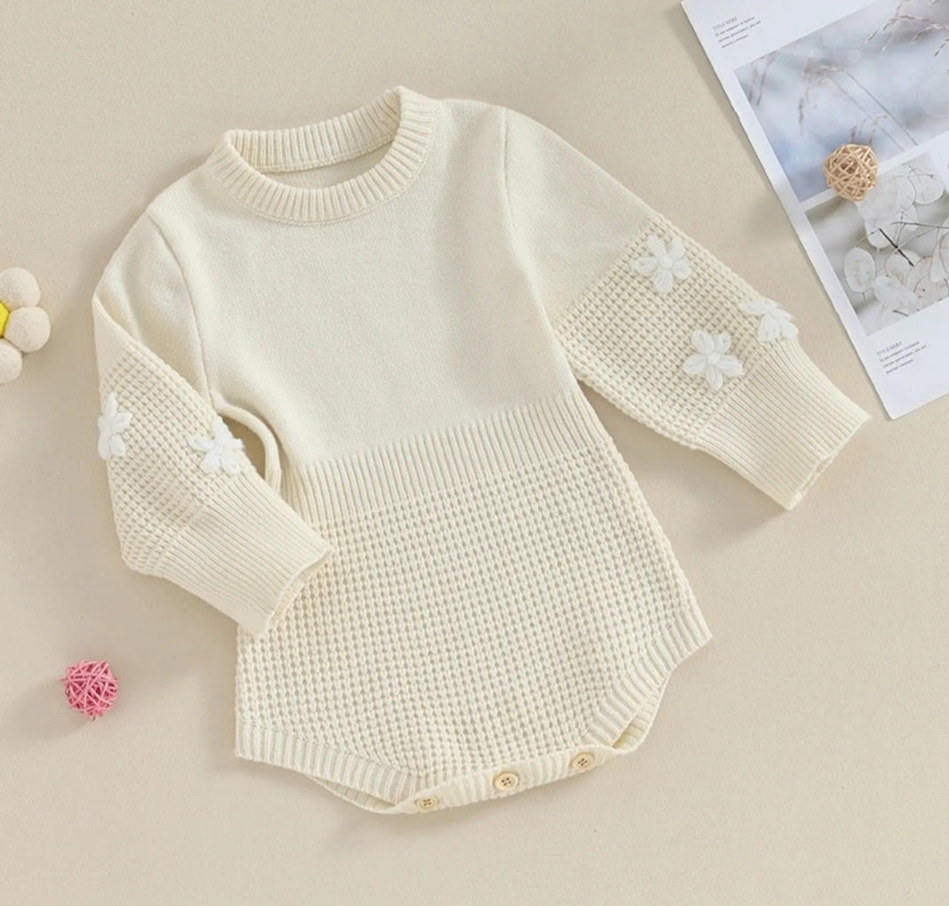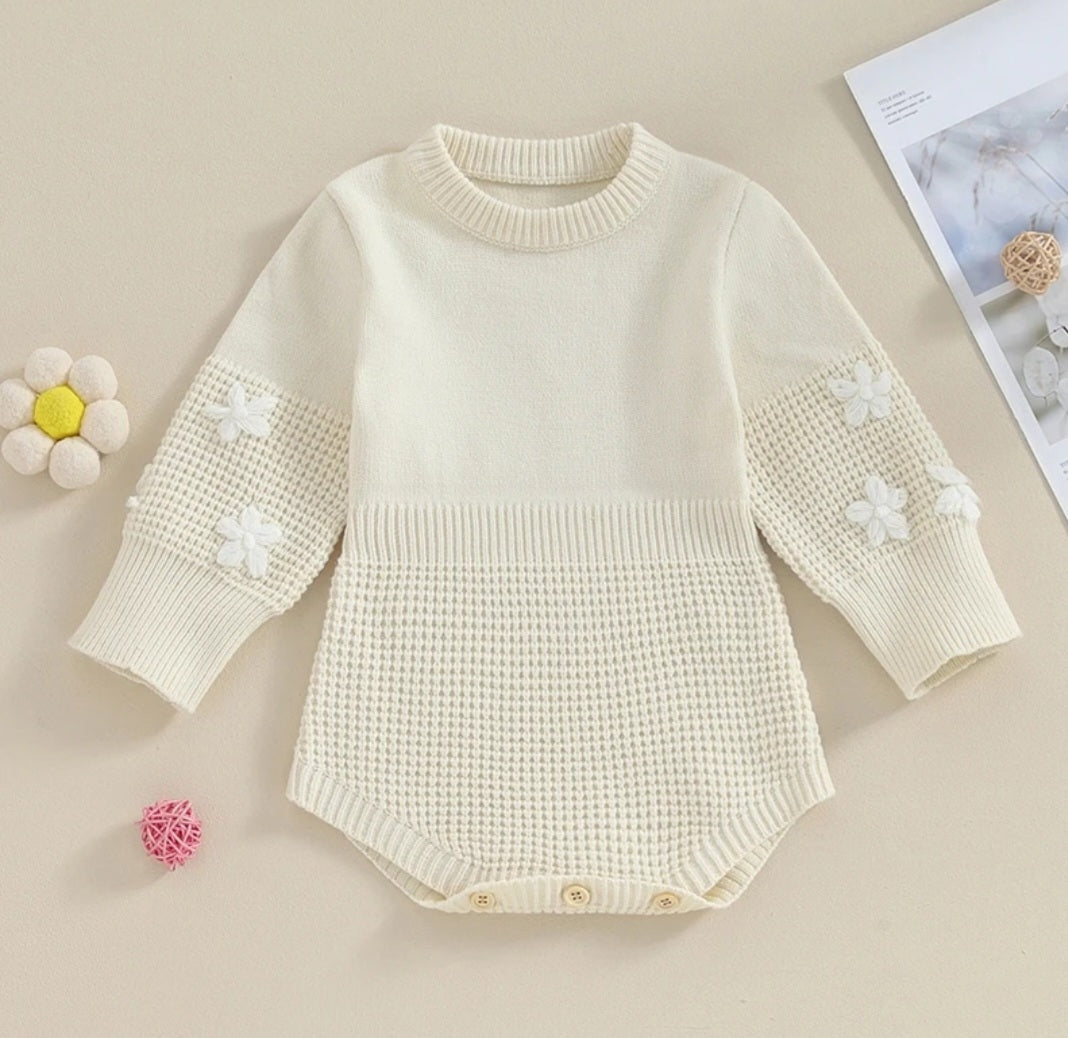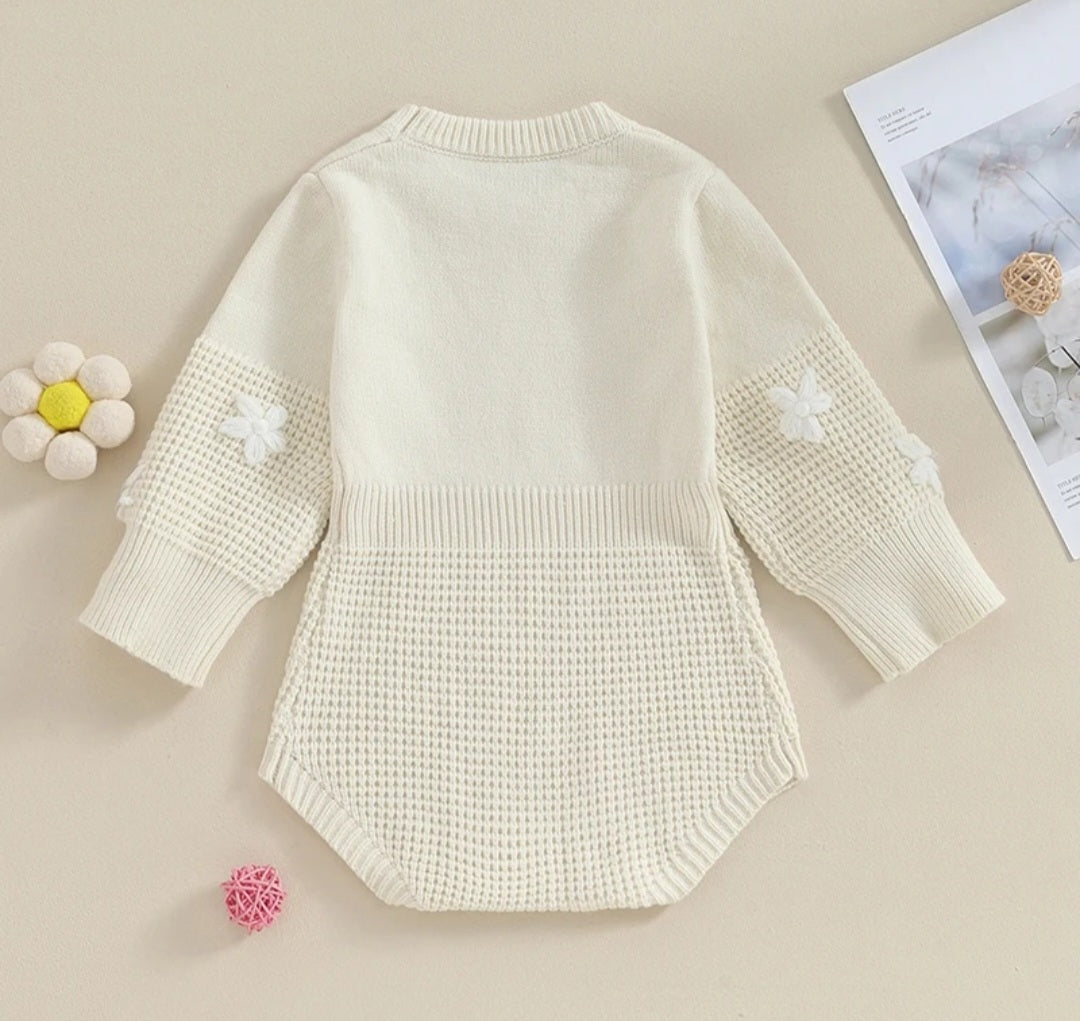 Luxury Knitwear Monotone Romper with Floral Detail #1000219