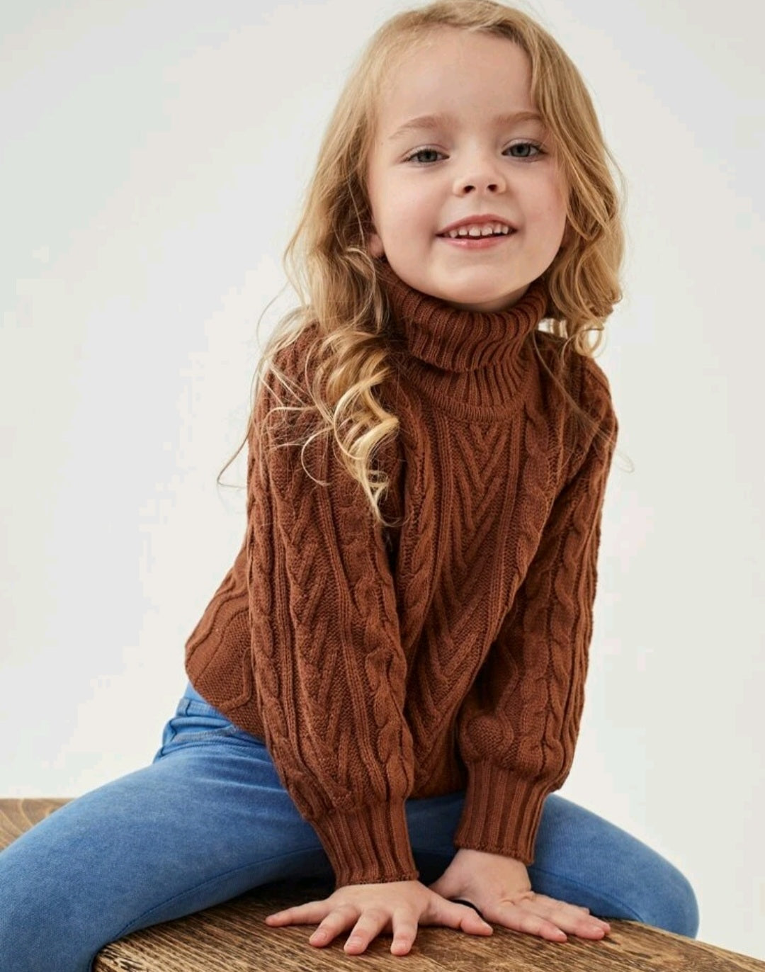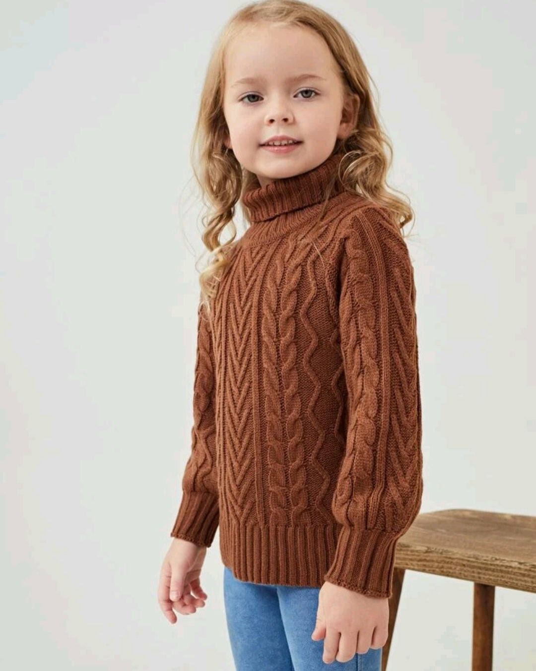 Chocolate Cable Knit Turtle Neck Sweater Gender Neutral #1000231