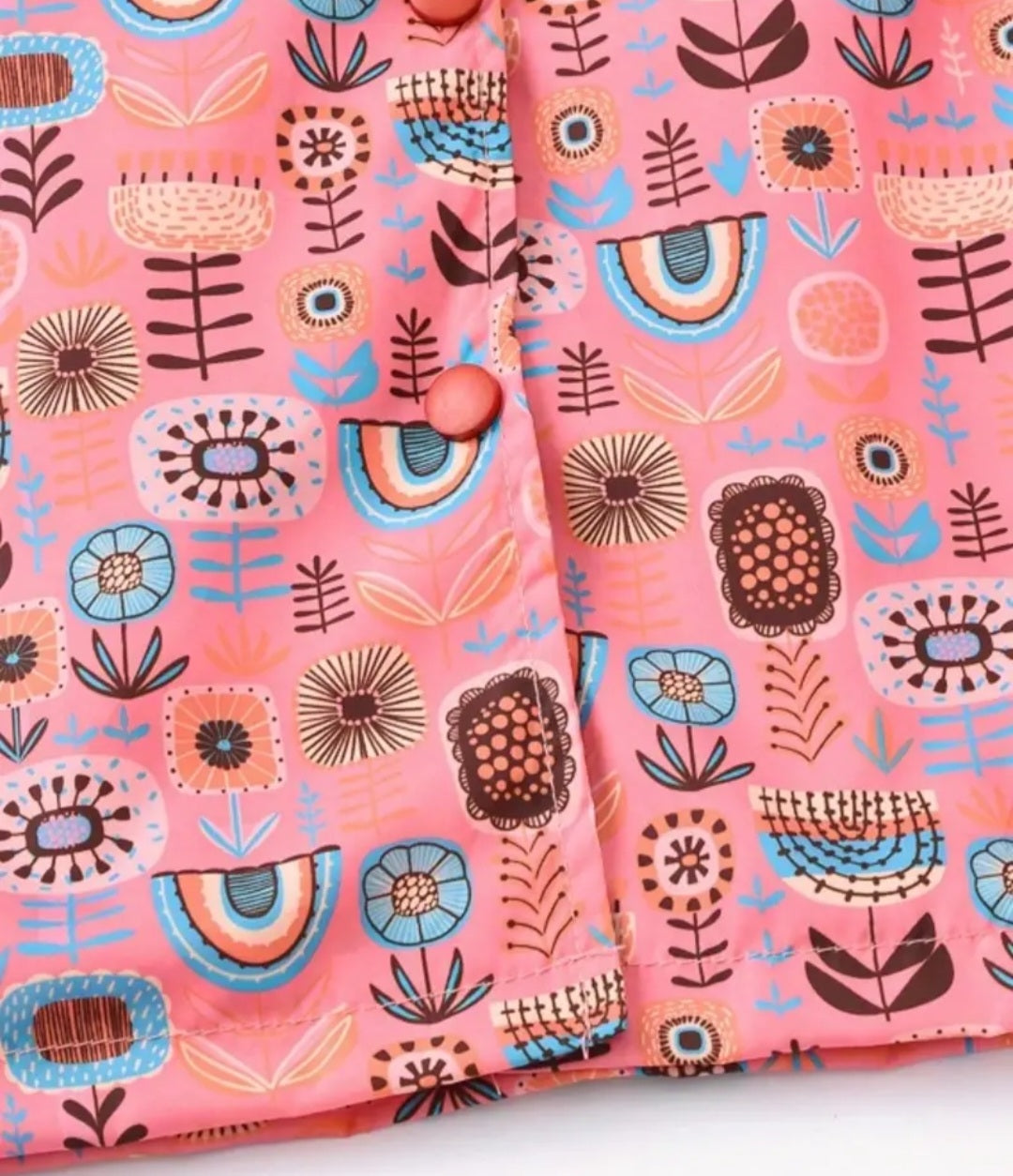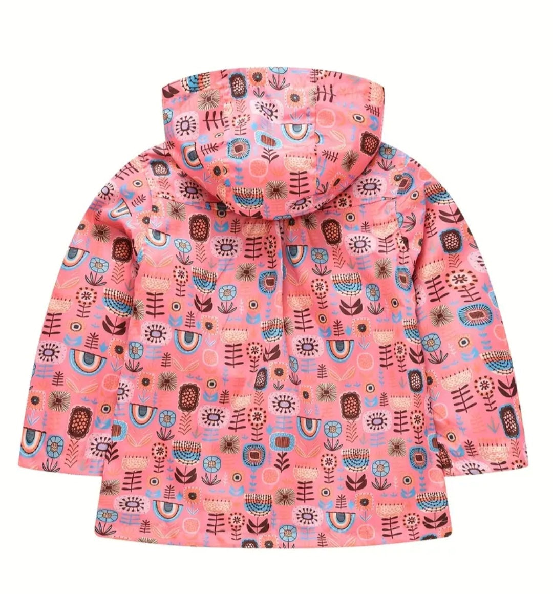 Coral Floral Hooded Windbreaker Button-up Coat