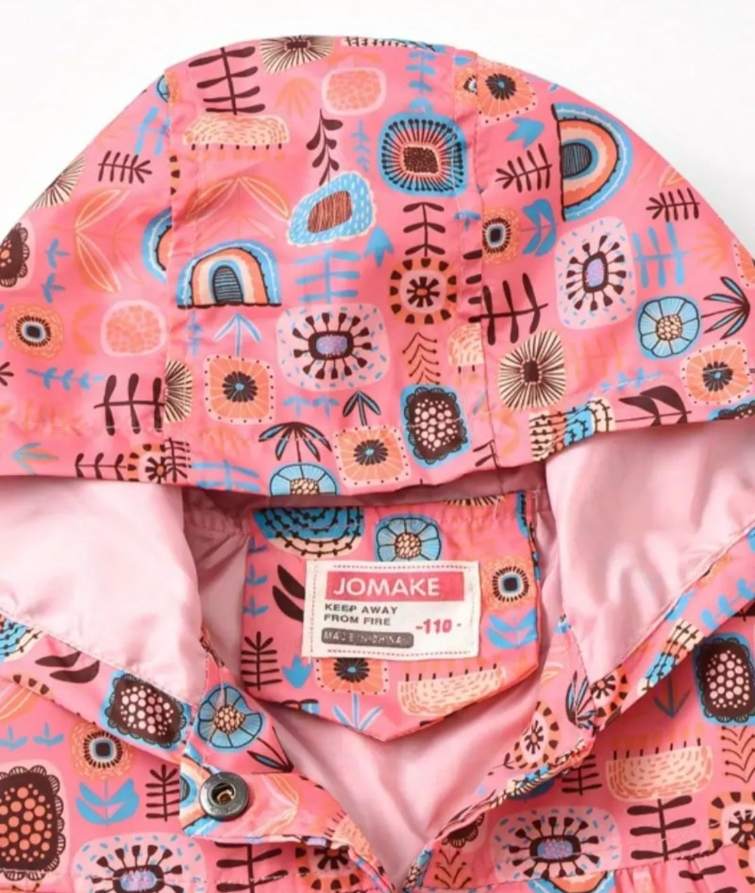 Coral Floral Hooded Windbreaker Button-up Coat #1000234