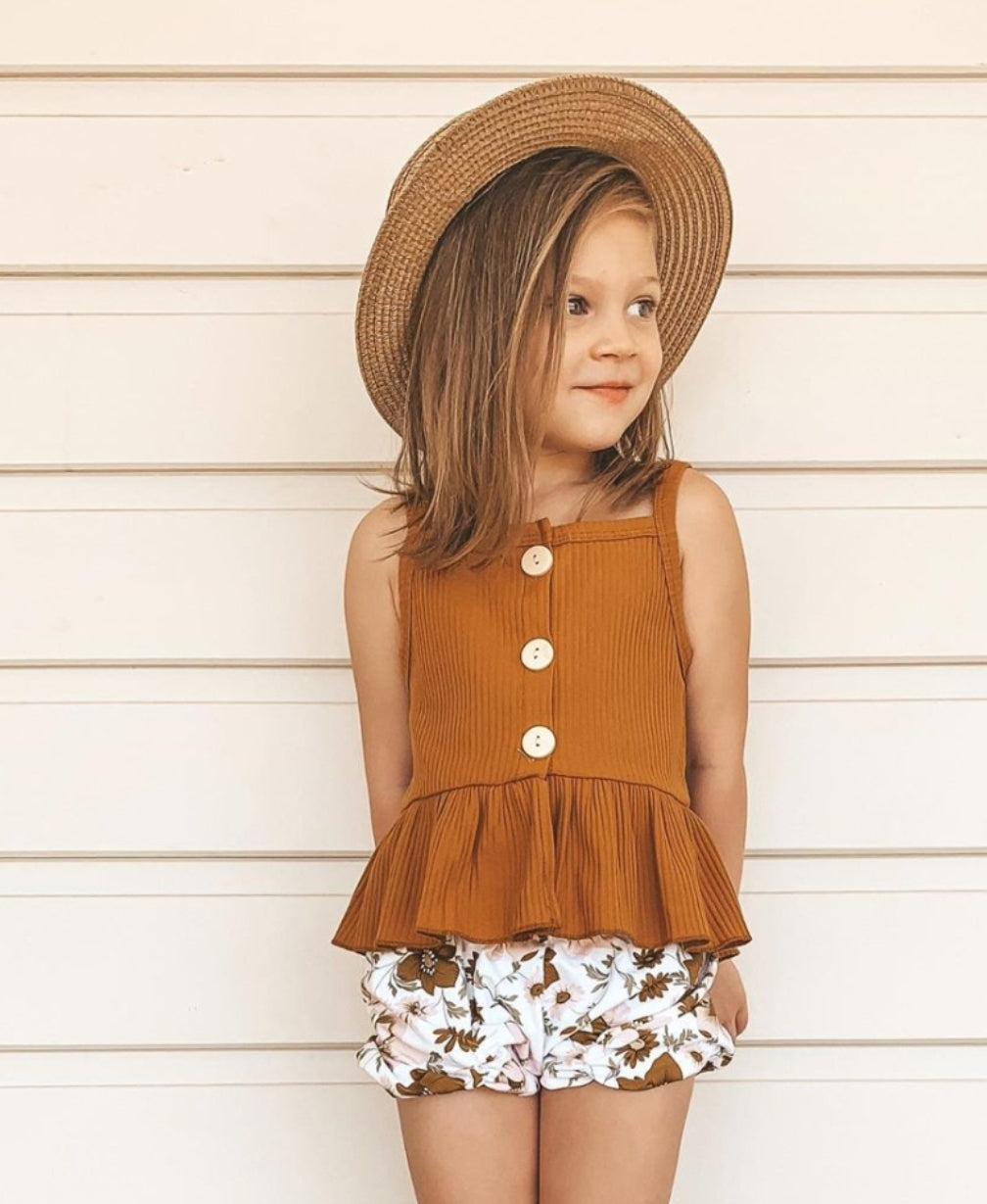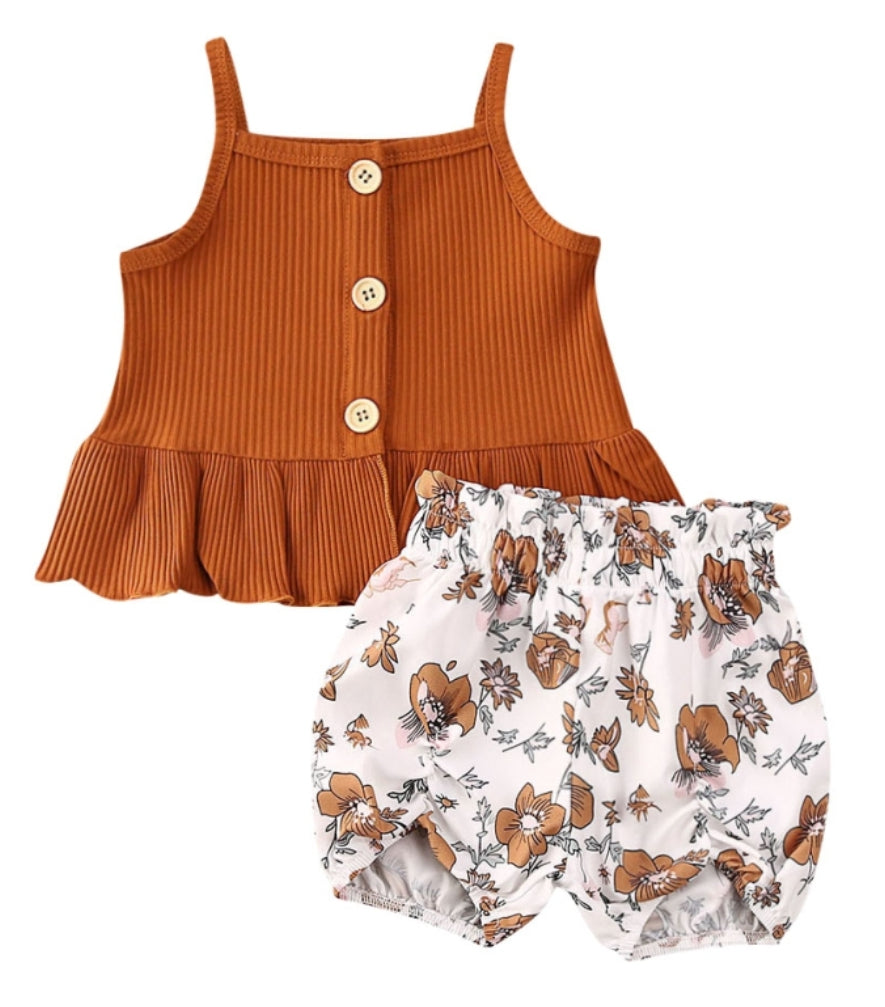 Rust Ribbed Spaghetti Top and Floral Shorts #1000238