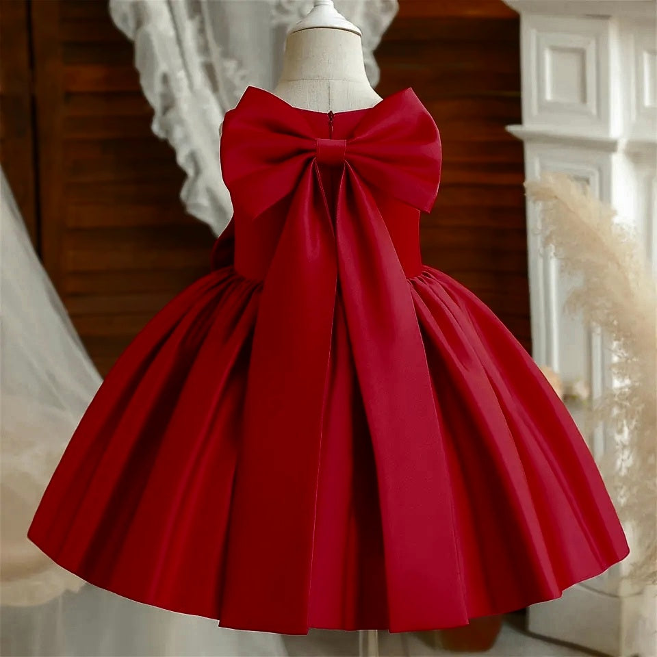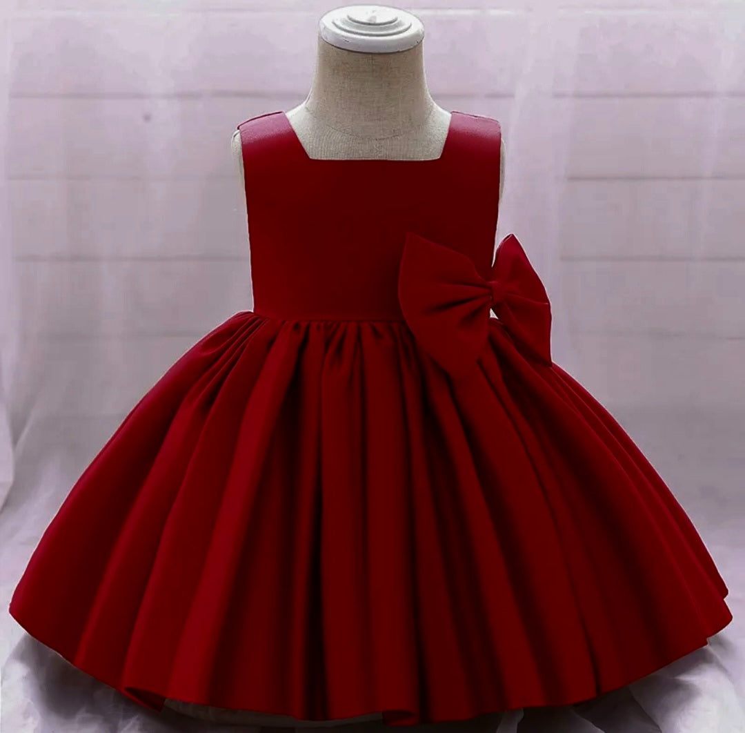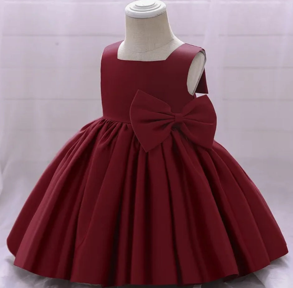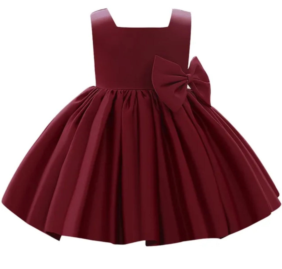 Burgundy Special Occasions Dress with Big Bow (Clip on)