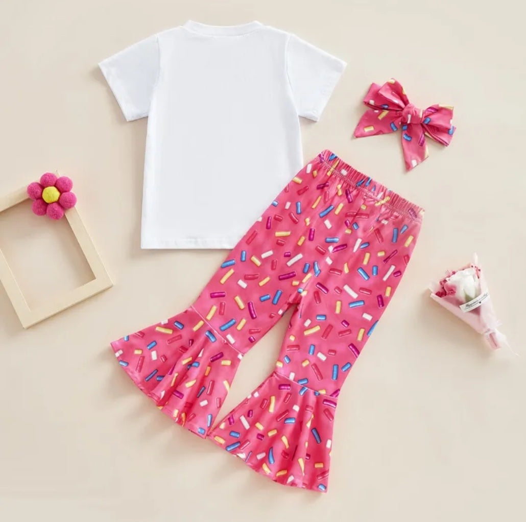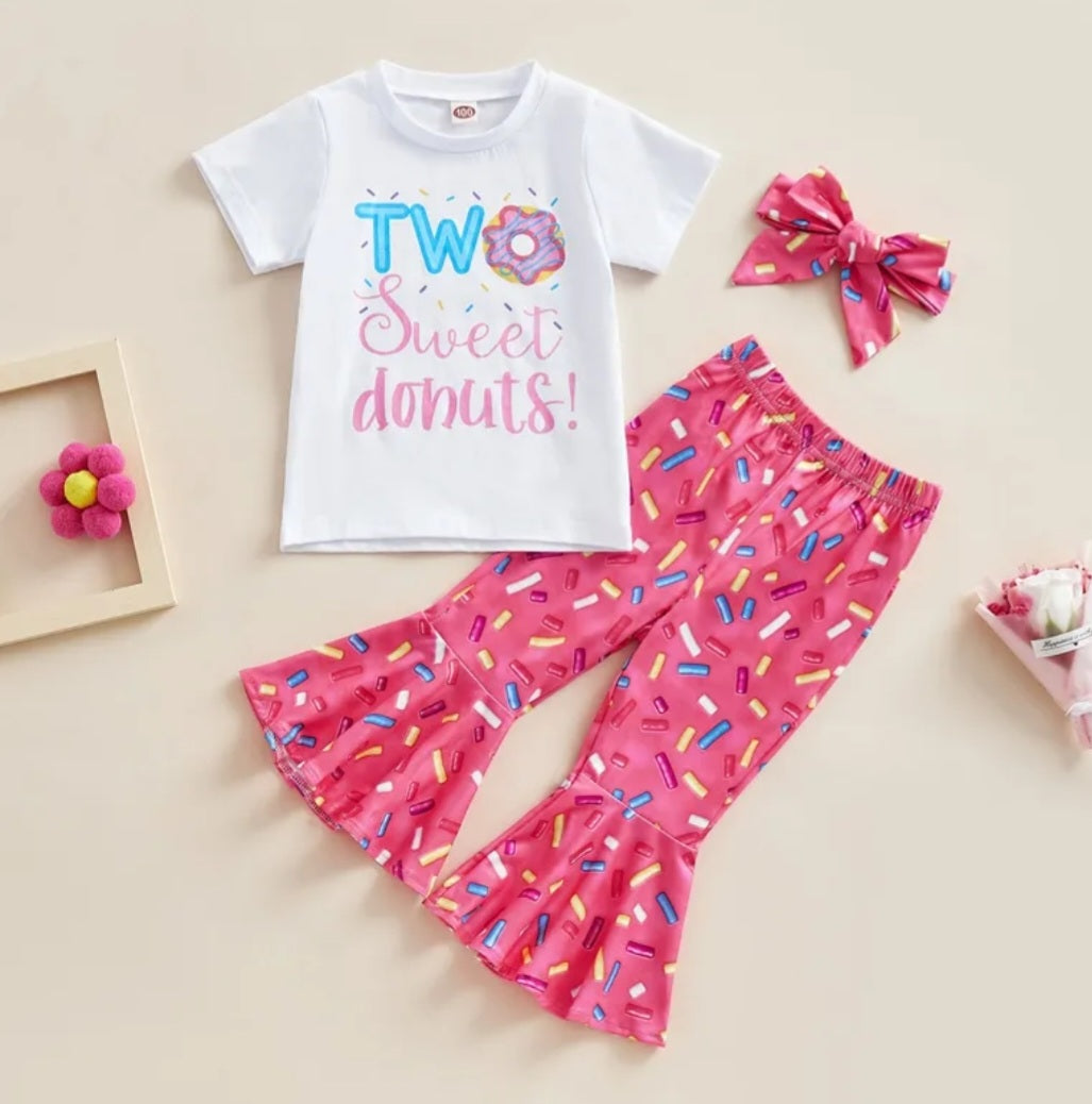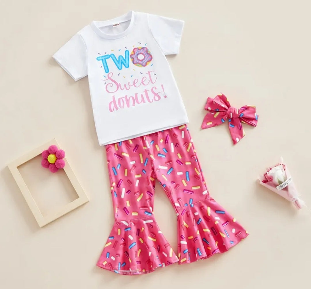 Two Sweet Donuts T-shirt with Bell Bottoms and Headband Doughnut