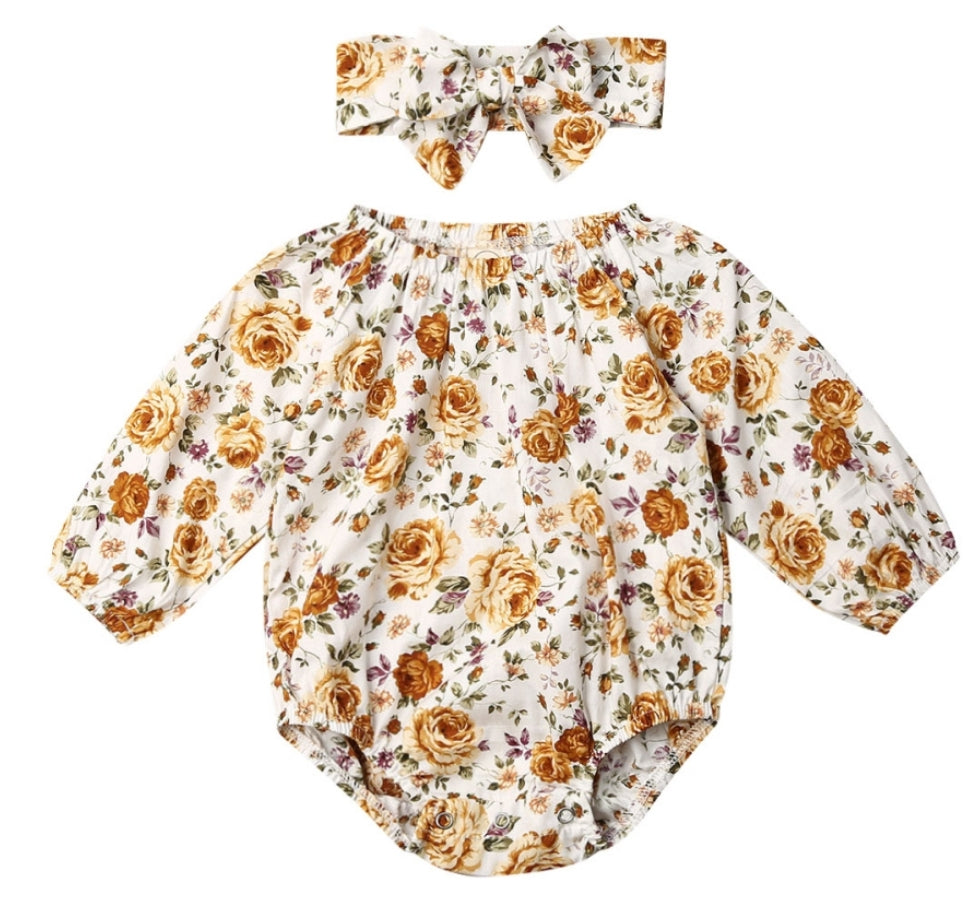 Vintage Petite Floral Balloon Romper and Headband