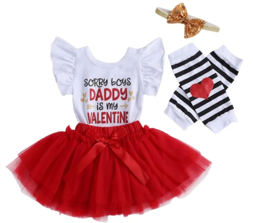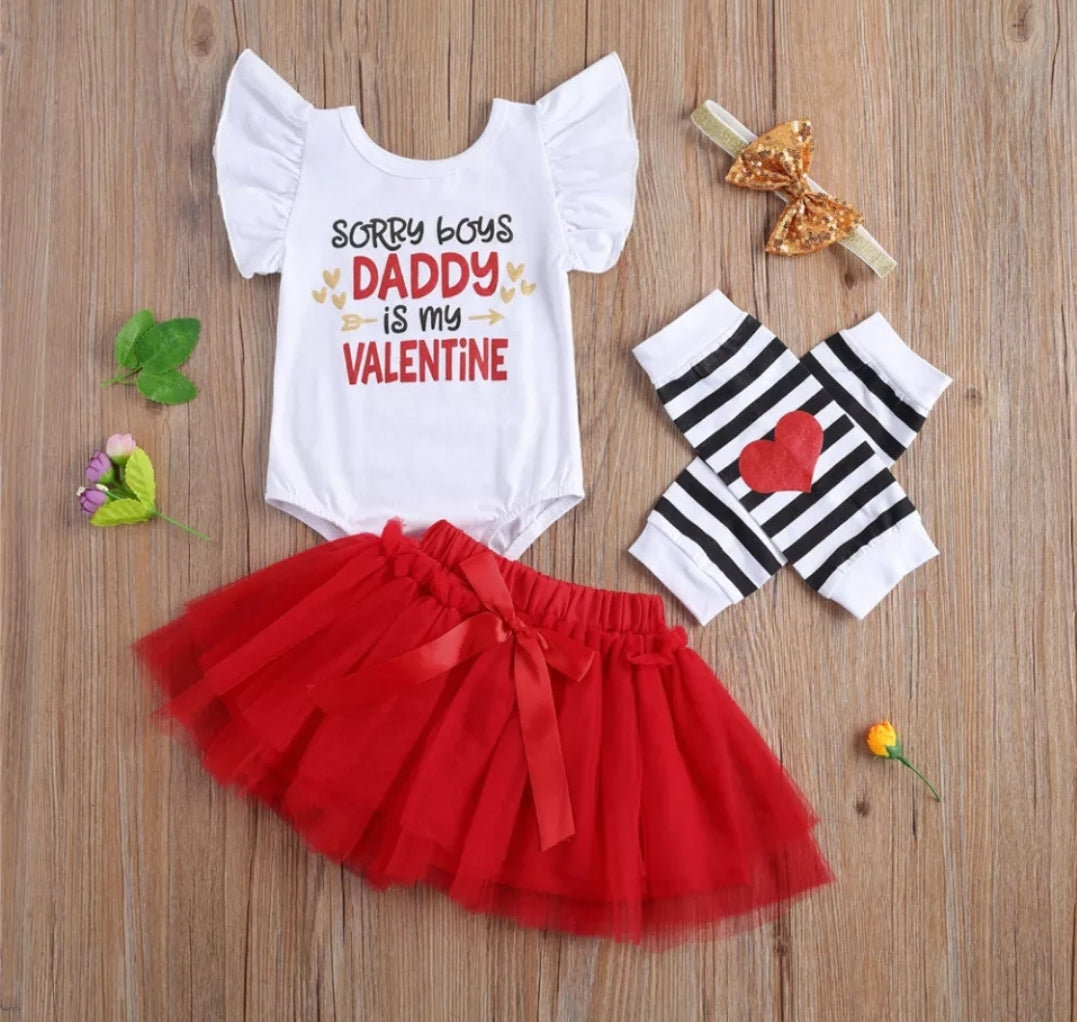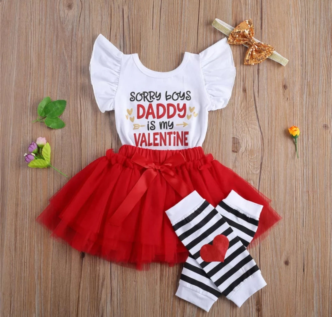 Sorry Boys DADDY is My Valentine Romper Tutu, Knee Warmers and Headband