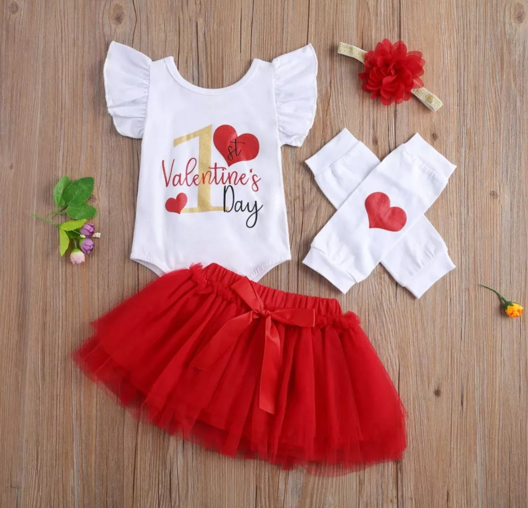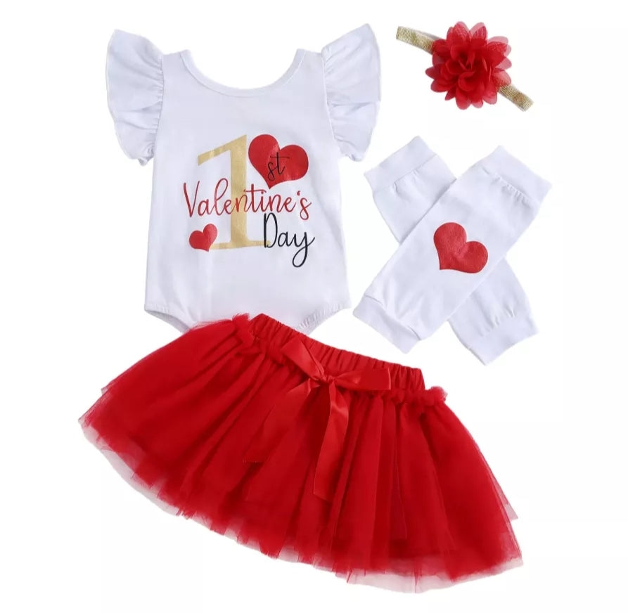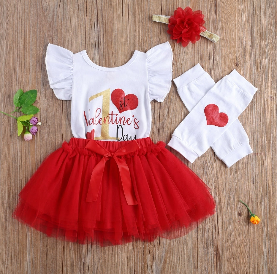 My First Valentine's day Romper with Tutu, Leggings and Headband