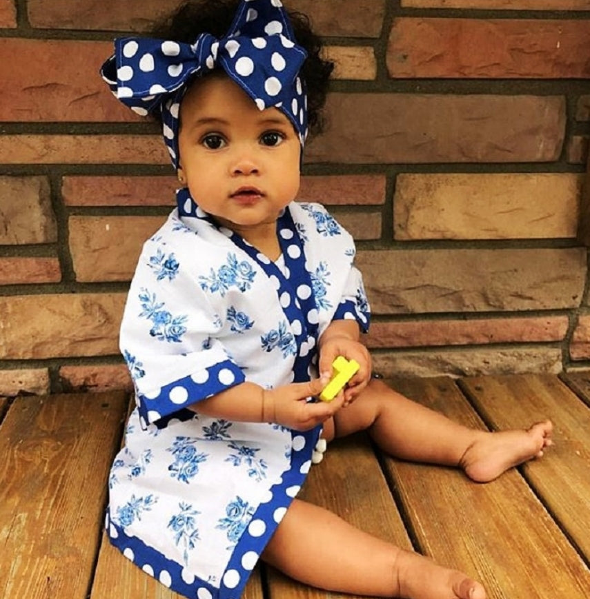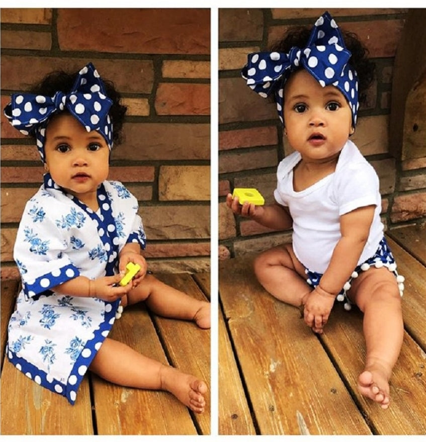 Royal Blue Floral Kimono with Bloomer and Headband #1000659