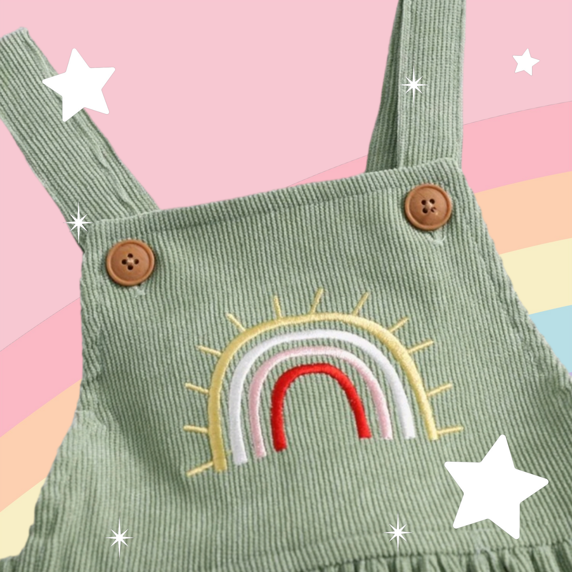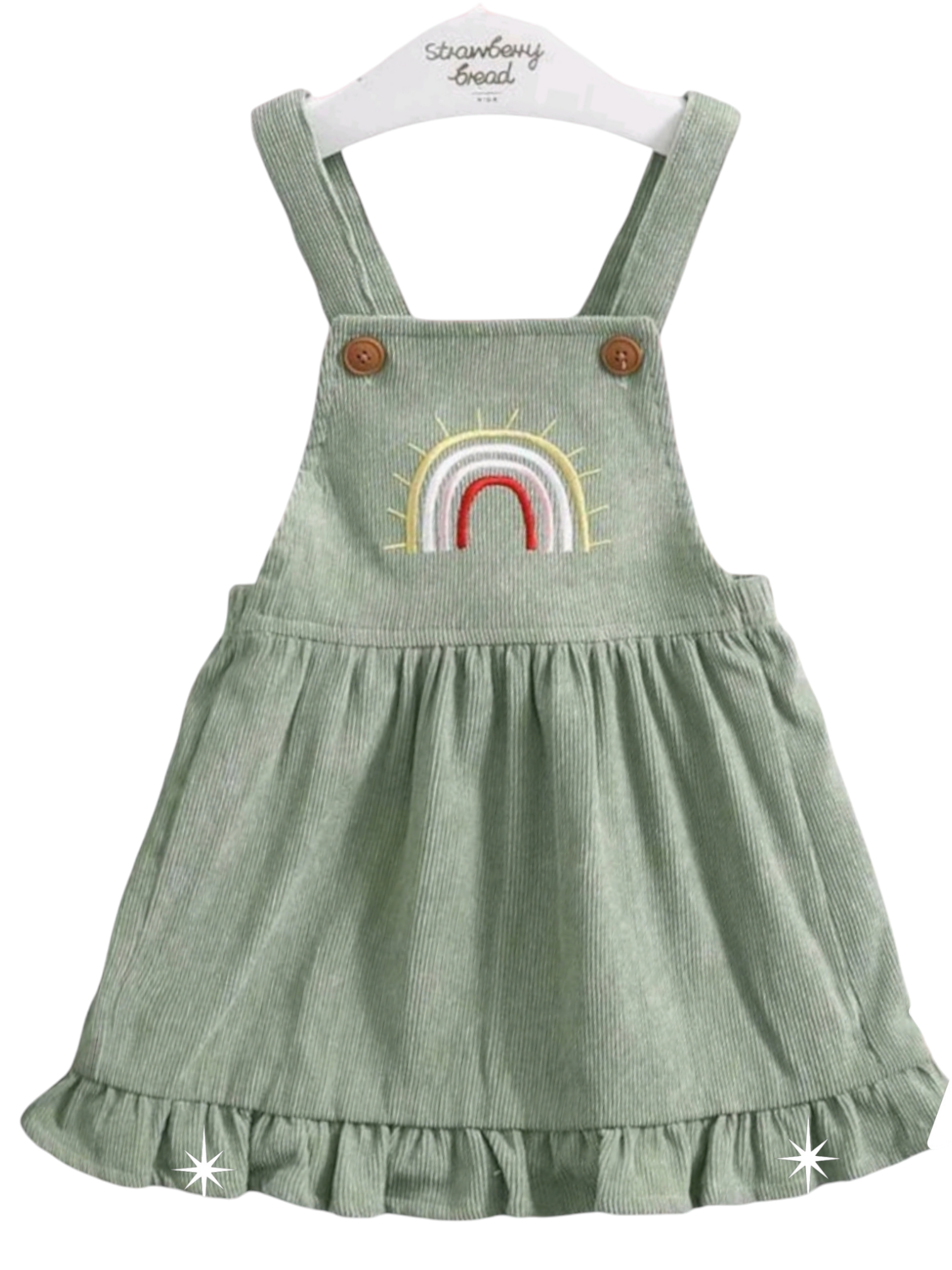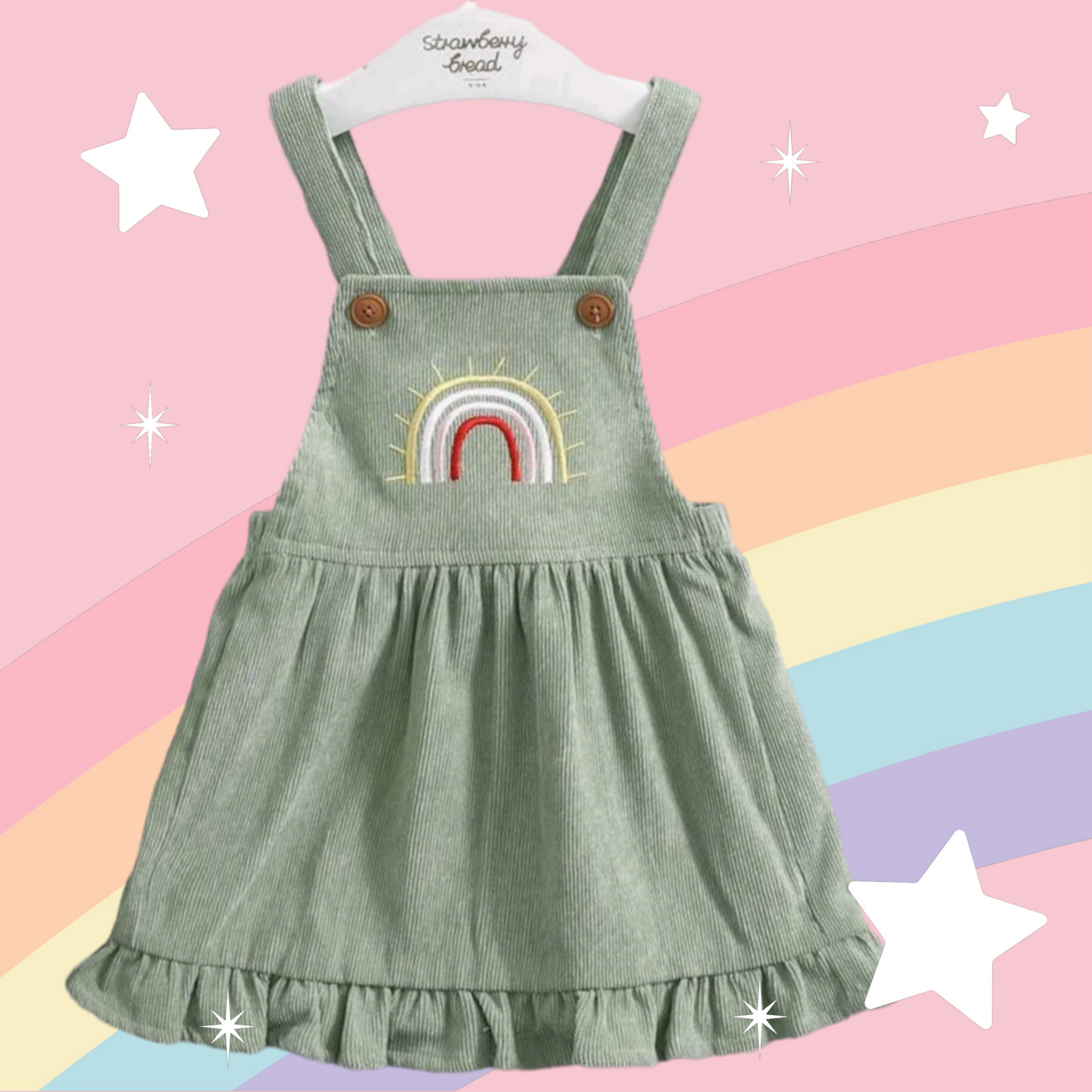 Sage Rainbow Dungaree Corduroy Dress #1000784