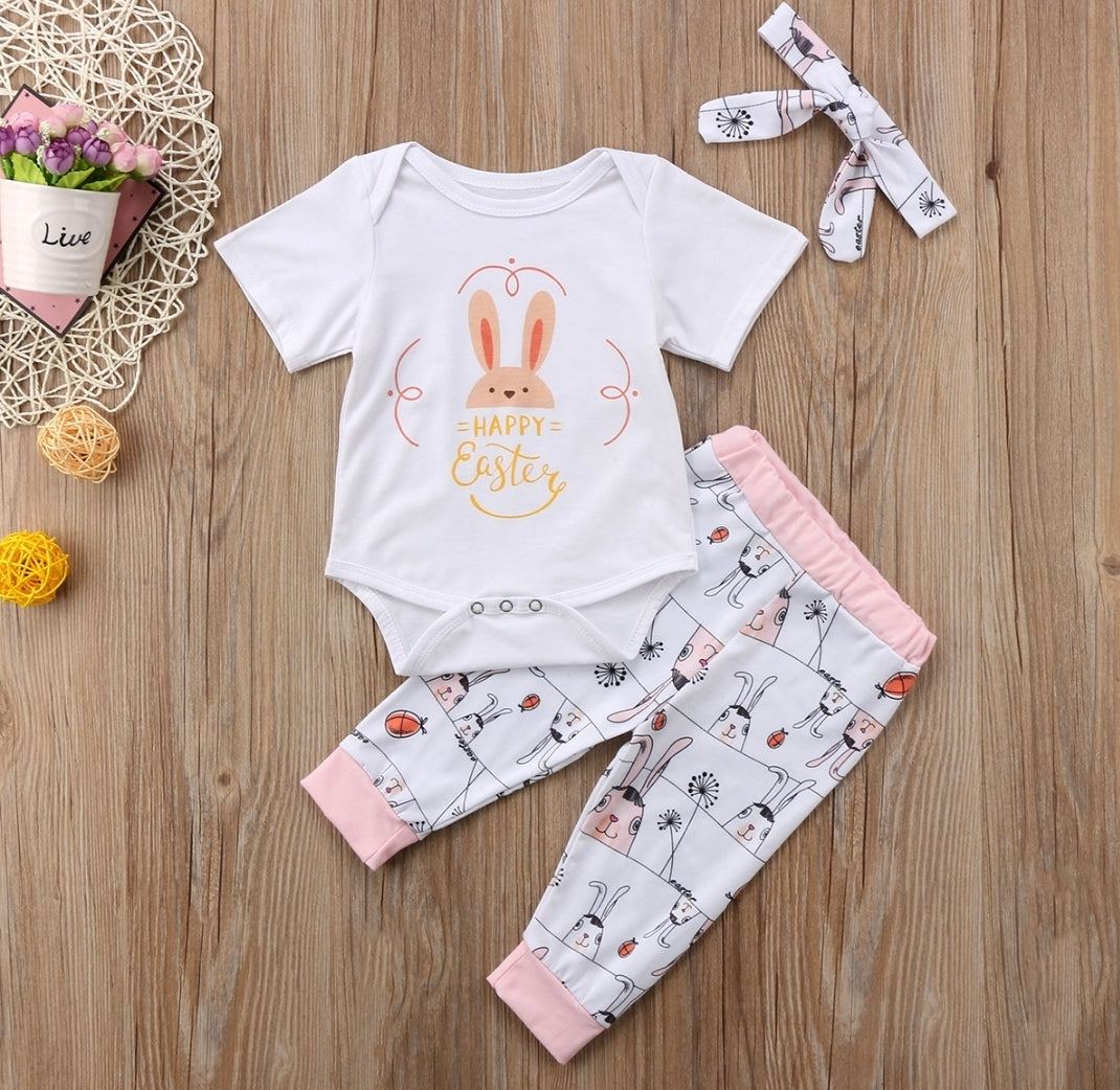 Happy Easter Romper with Bunny Pants and Headband #1000811