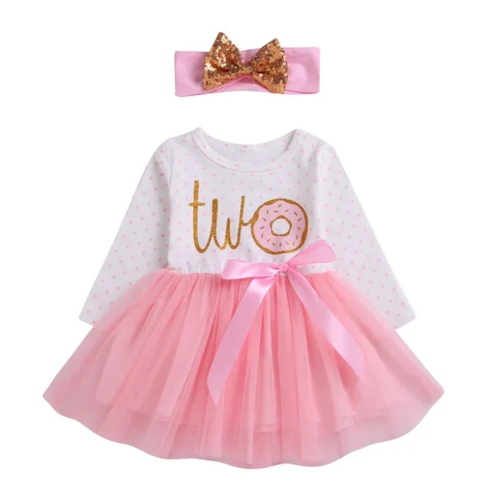 Two Long Sleeve Birthday Dresses and Headband #100085