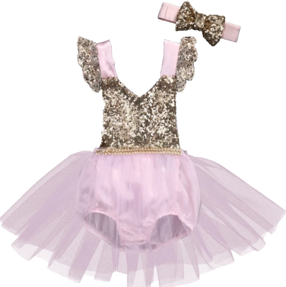 Pink and Sequins Romper with Romantic Tutu #1000864