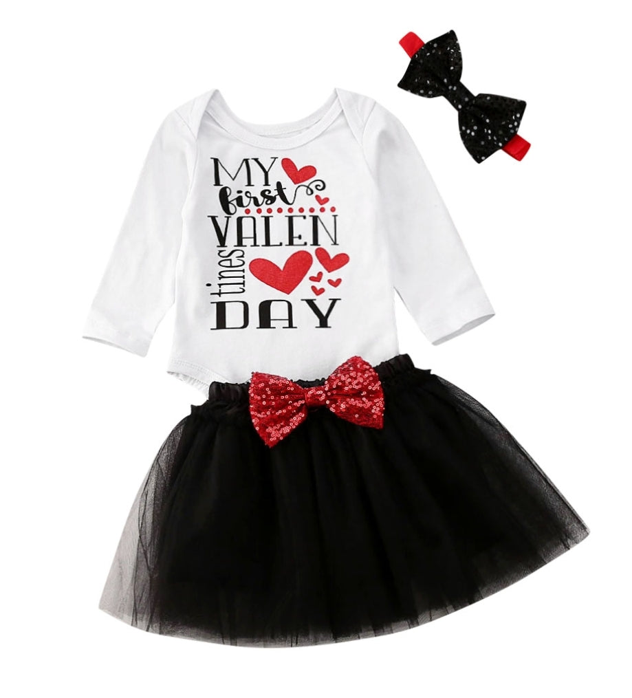 My Frist Valentines Day Romper with Black Tutu and Headband #1000867