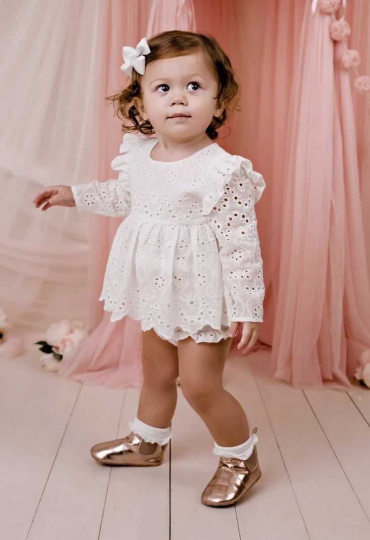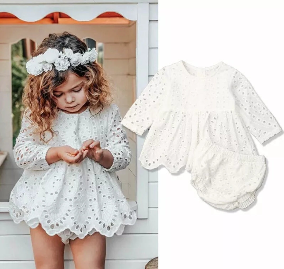 Long Sleeve Dress Top And Lace Bloomer