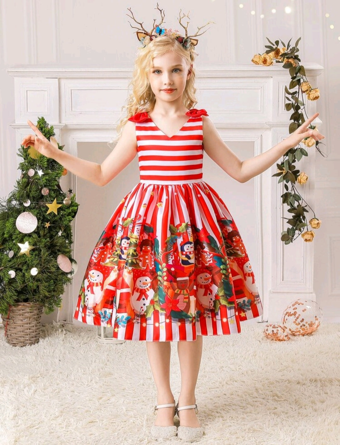 Striped Red and White Christmas Special Occasions Dress #1000975