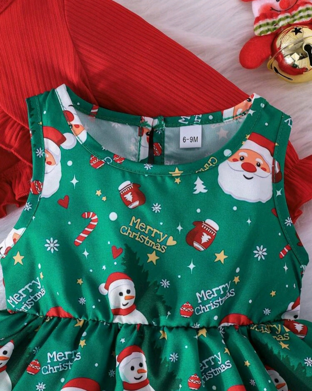 3PSC Christmas Outfit Dress, Headband and Long Sleeve Ruffle Top