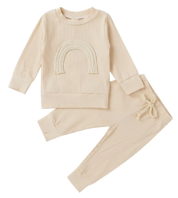 Cream Crewneck Ribbed Rainbow Tracksuit