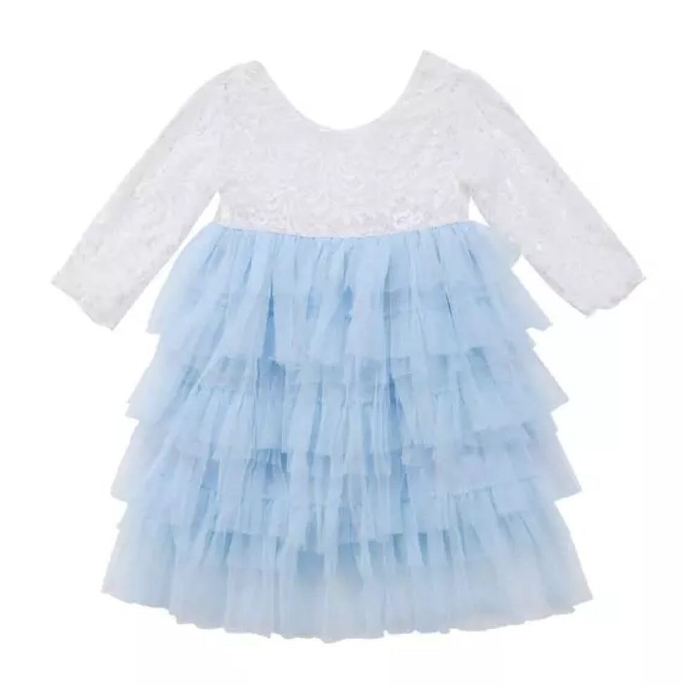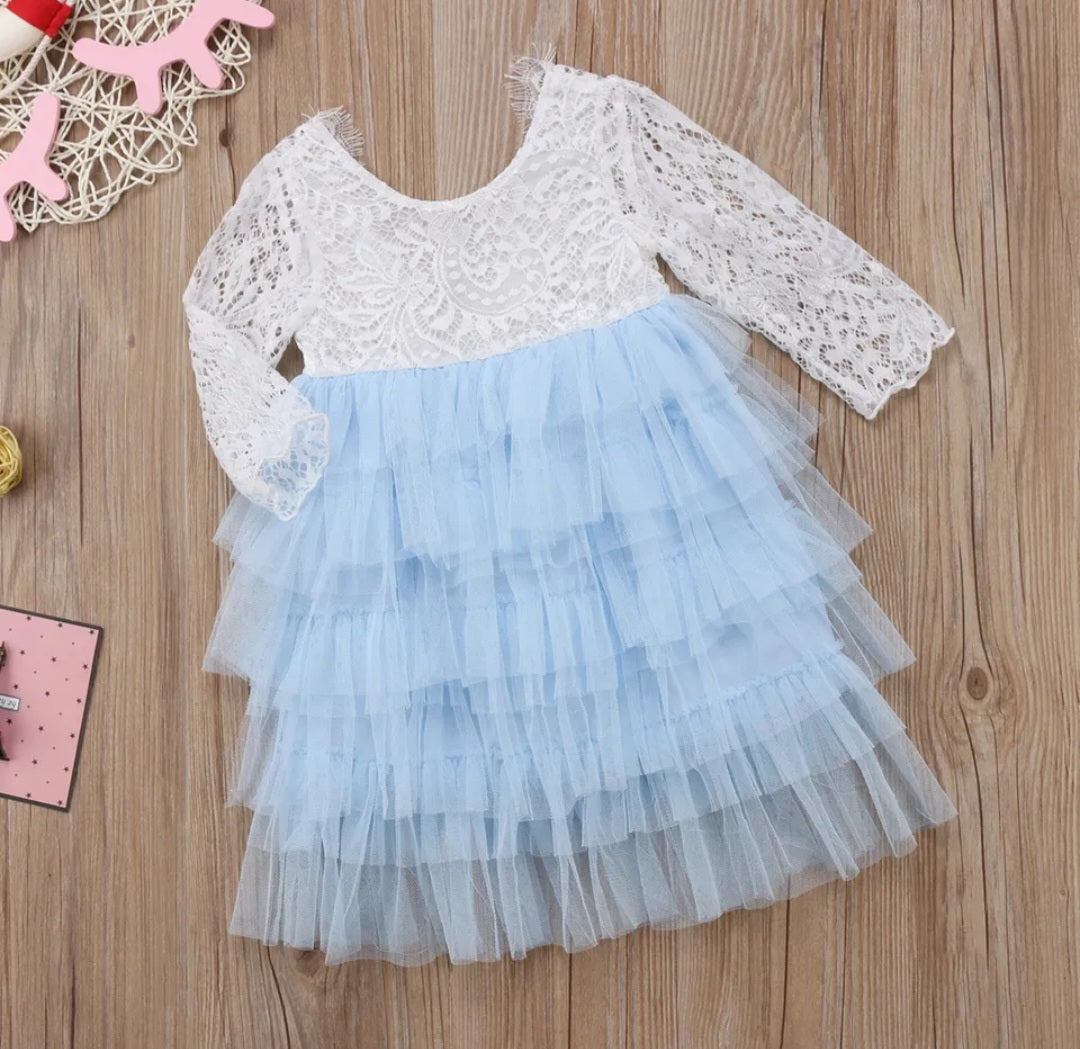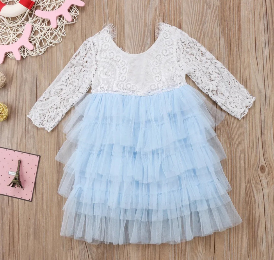 Powder Blue Long Sleeve Lace Dress #1001033