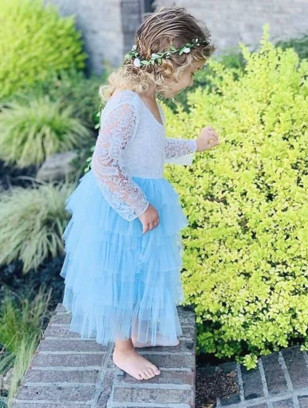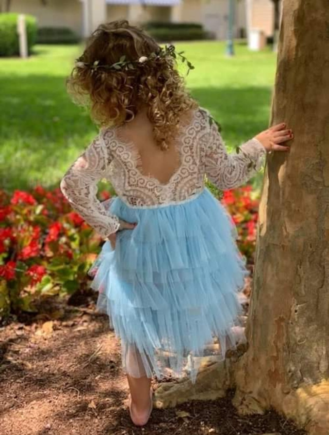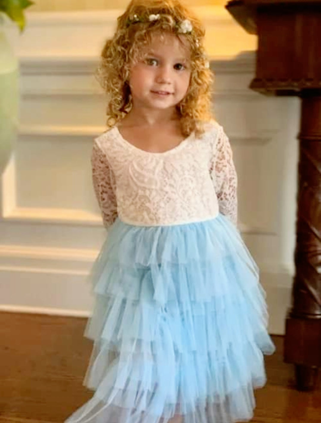 Powder Blue Long Sleeve Lace Dress #1001033