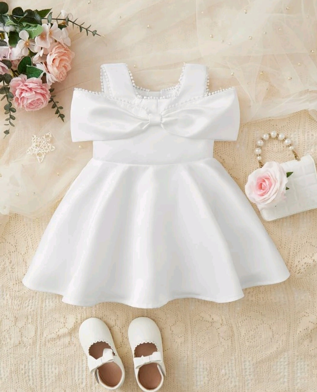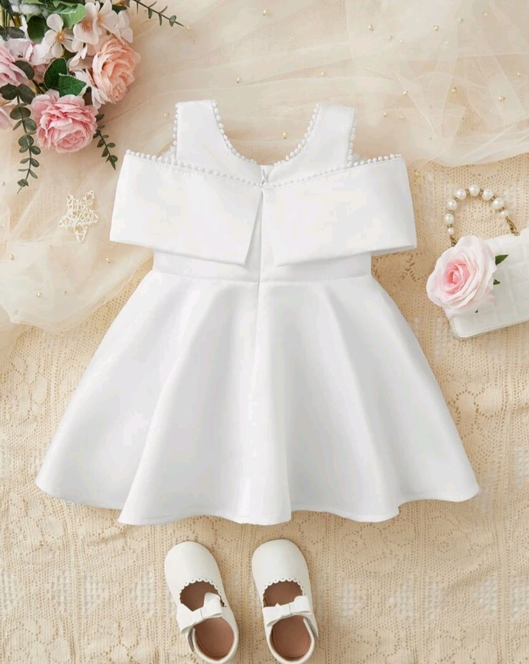 White Dress with Big Bow and Peep Sholders