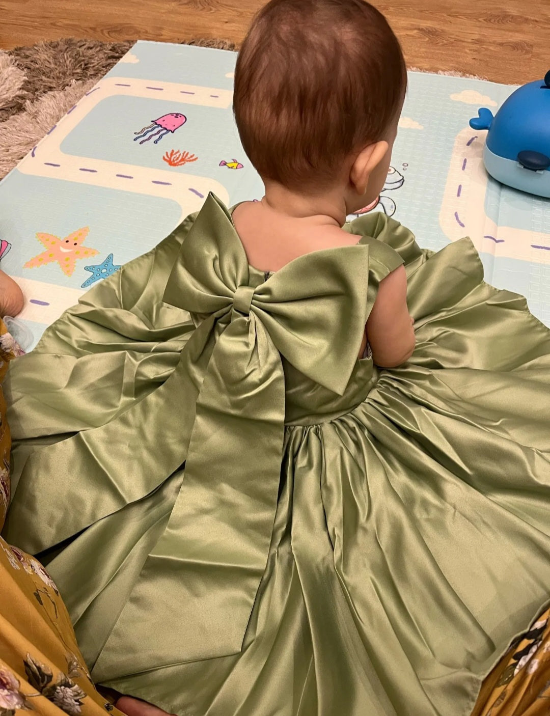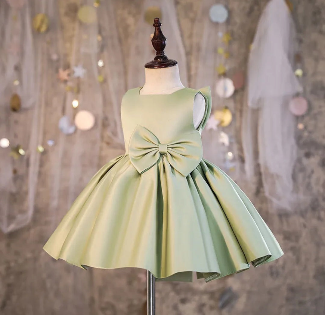 Pistachio Green Special Occasions Dress with Big Bow (Clip on)