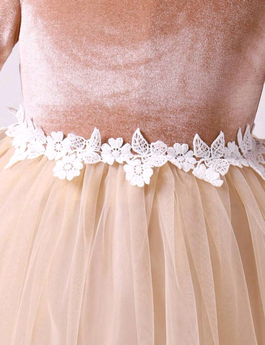 Apricot Velvet Long Sleeve Floral Dress #1001143