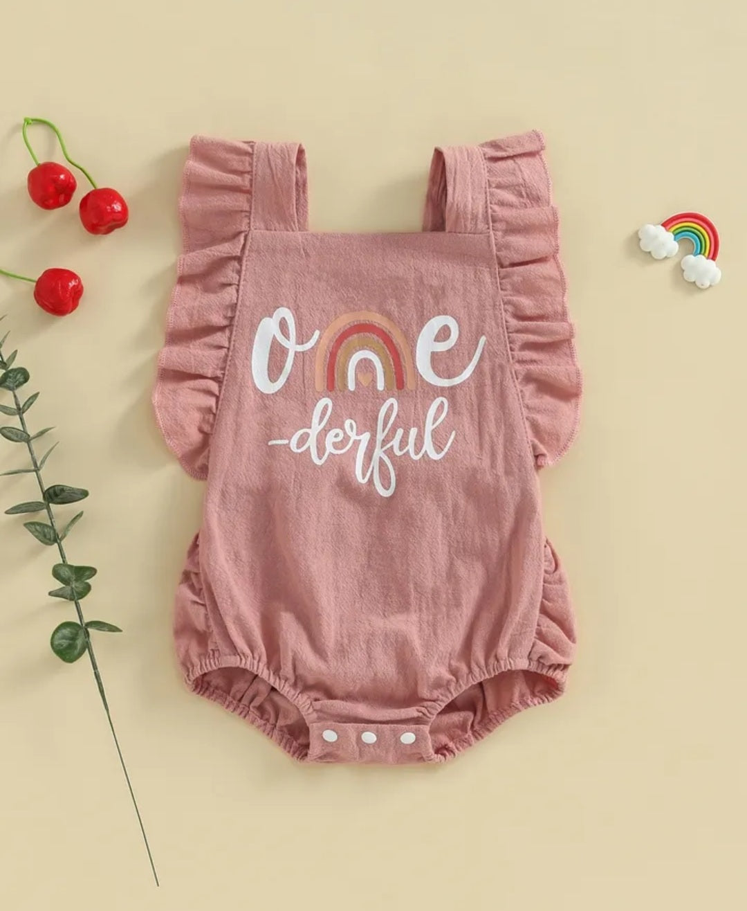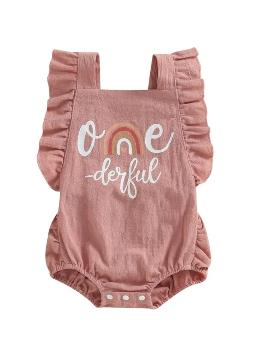 Dusty Pink ONE Derful Birthday Rainbow Romper