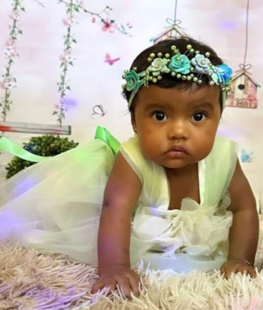 Chai Green Tulle Dress with Floral Detail