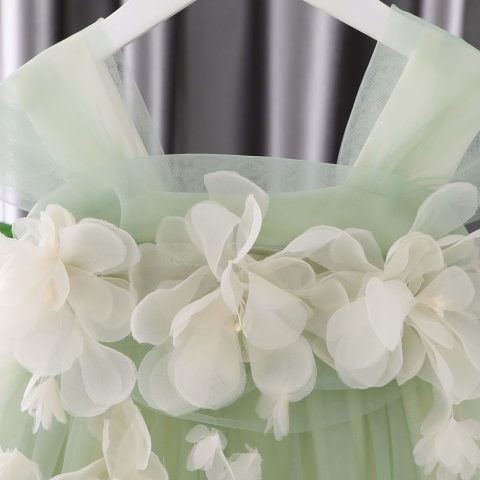 Chai Green Tulle Dress with Floral Detail #1001177