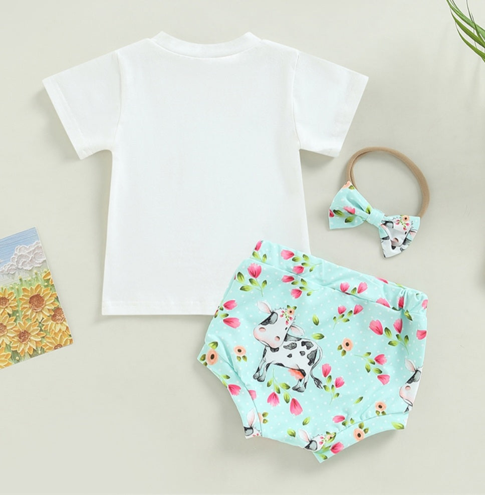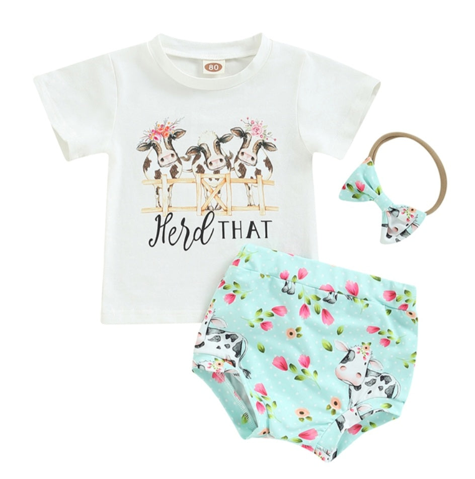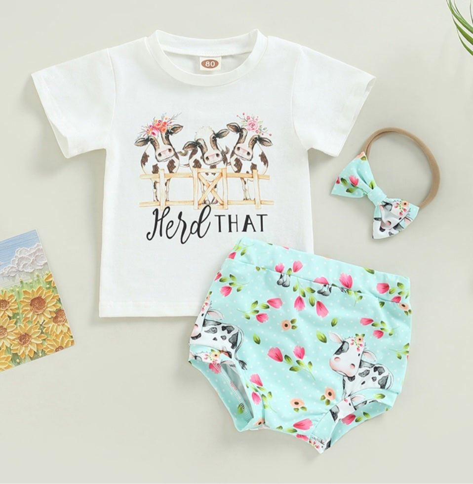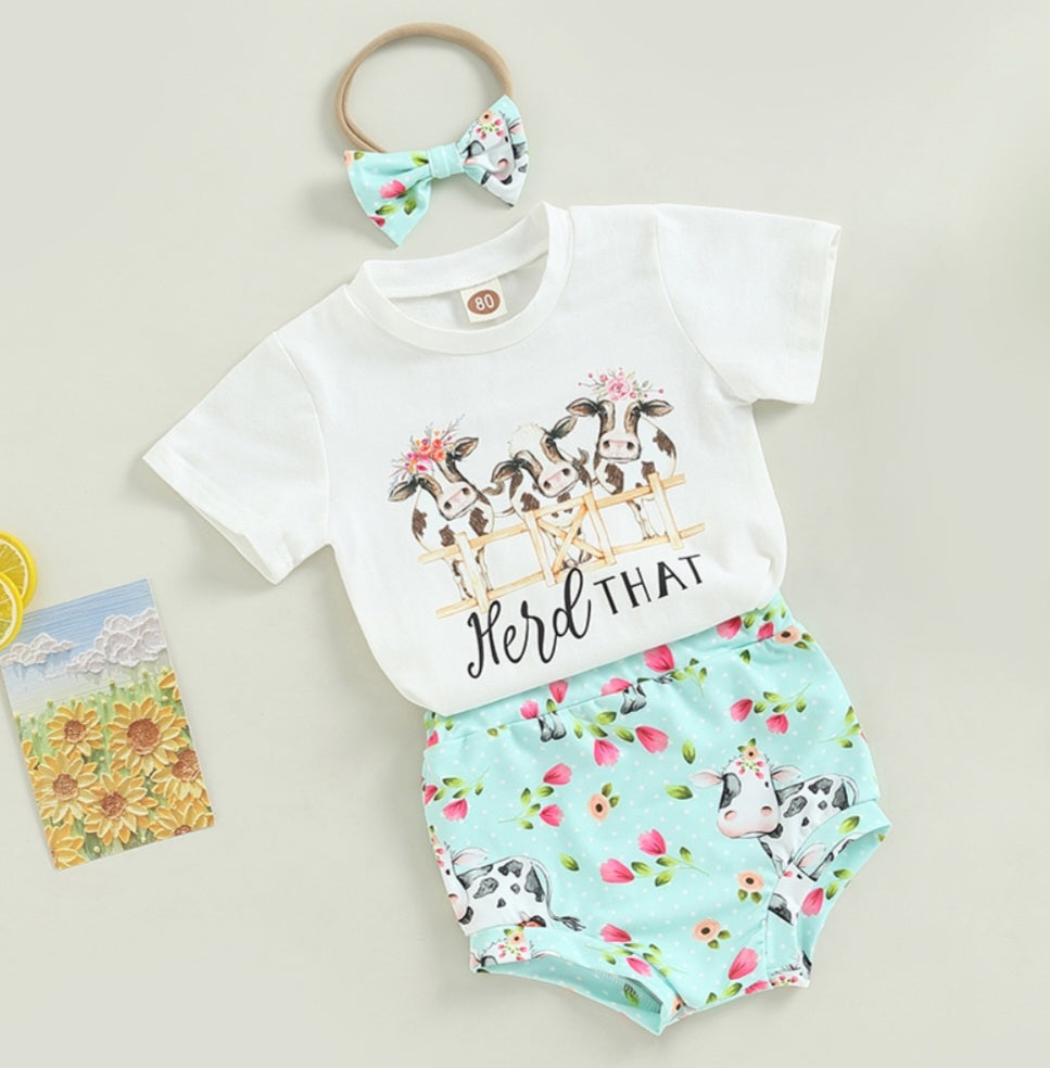 Heard THAT, T-Shirt with Floral Cow Bloomer and Headband