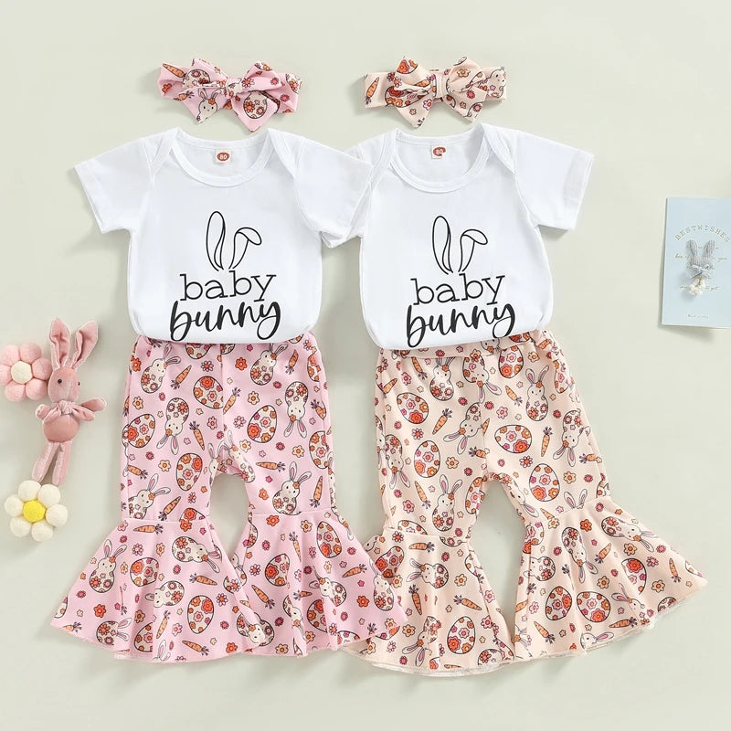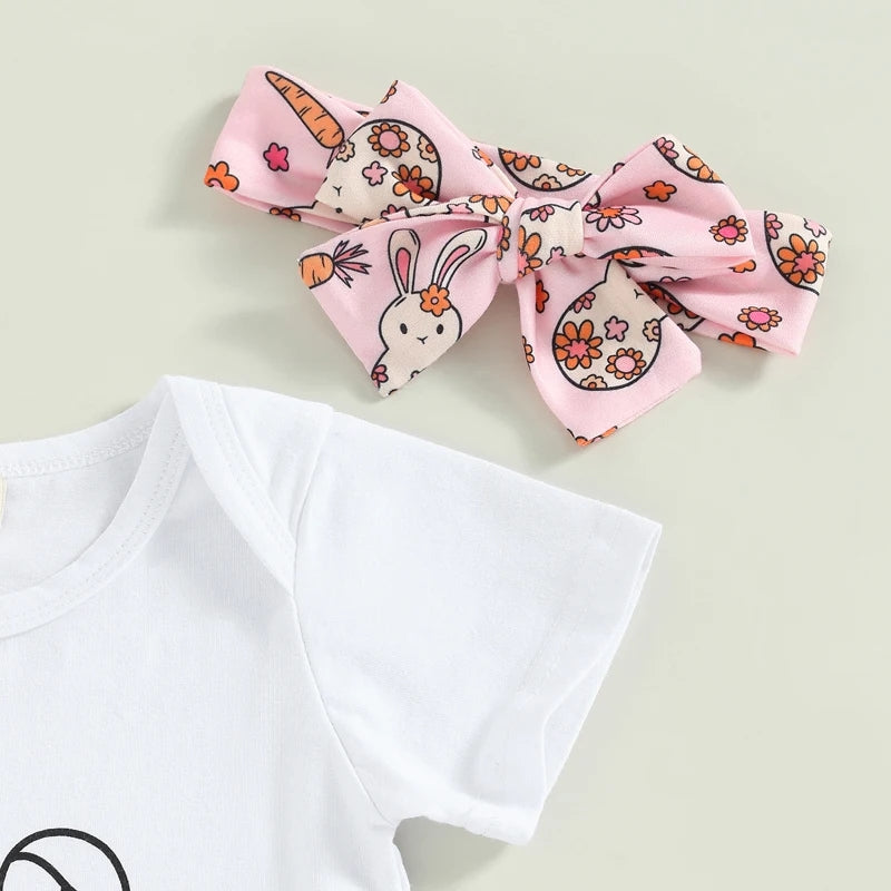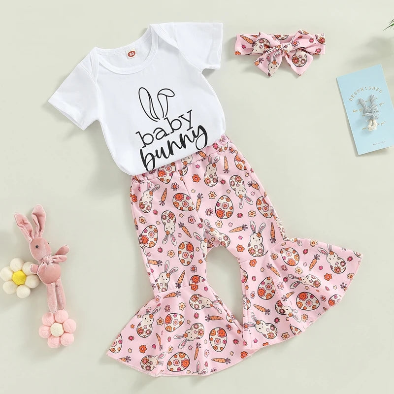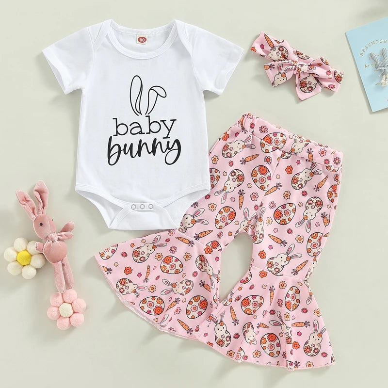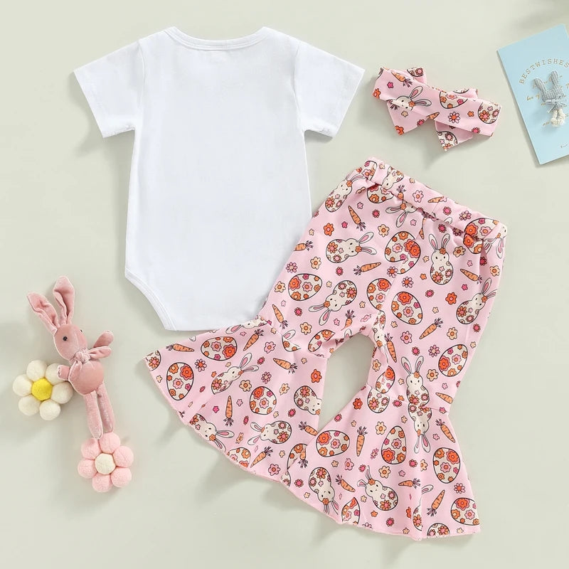 Baby Bunny Romper with Bellbottoms and Headband Pink
