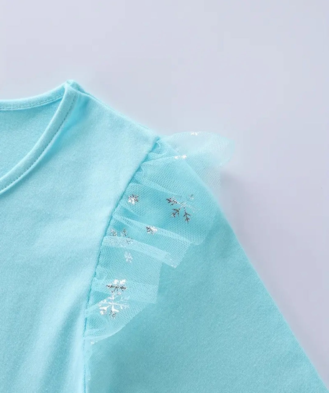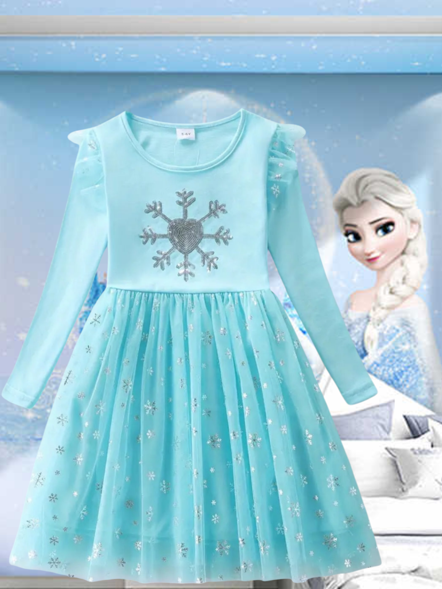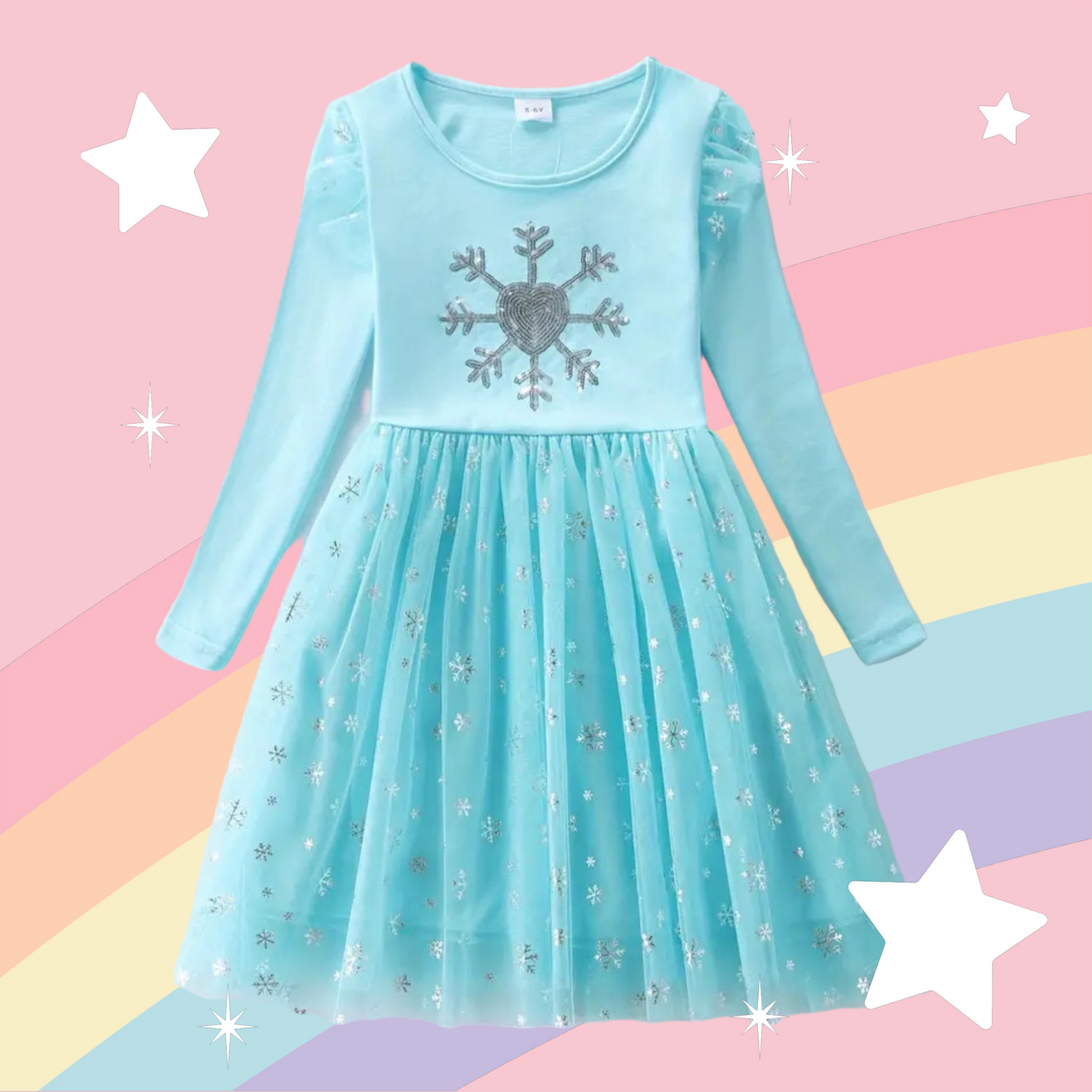 Blue Snow Princess Dress with Embroidered Snowflake #1002001