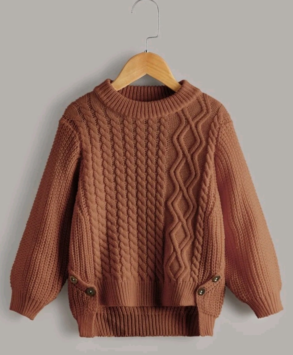 Mocha Cable Knited Crew Neck Sweater, Gender Neutral #10020016