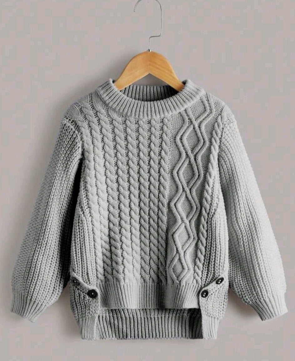Gray Cable Knited Crew Neck Sweater, Gender Neutral #10020017