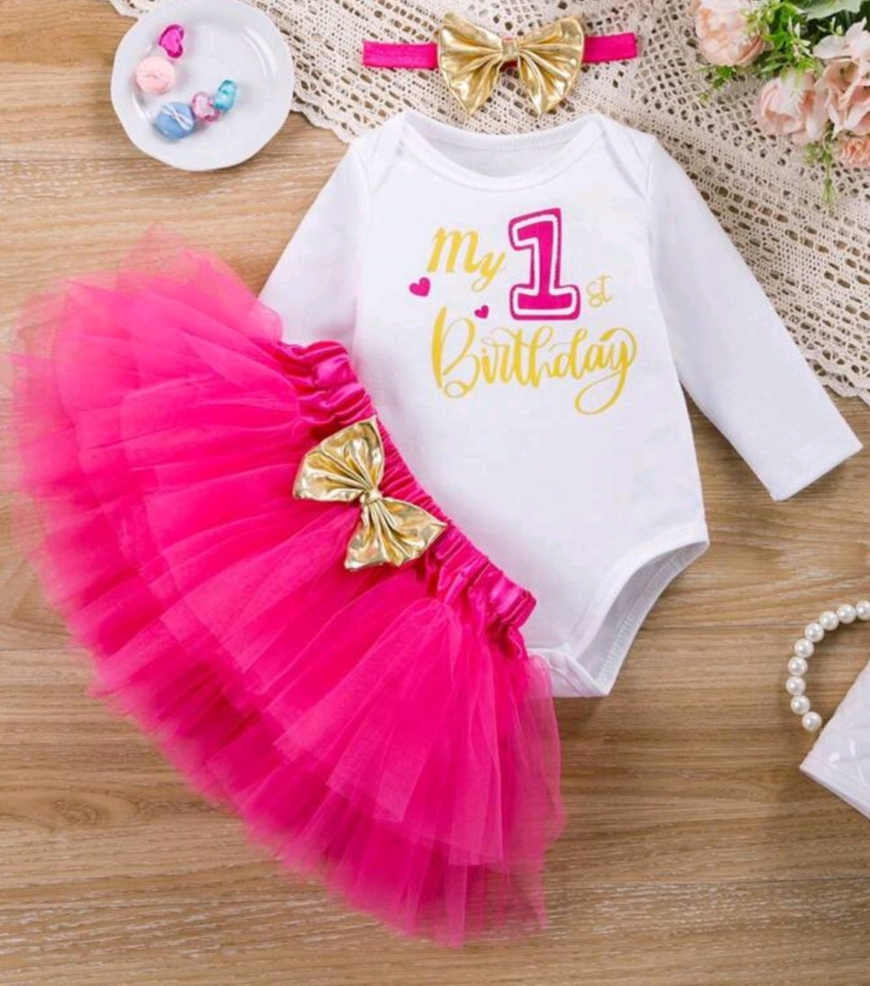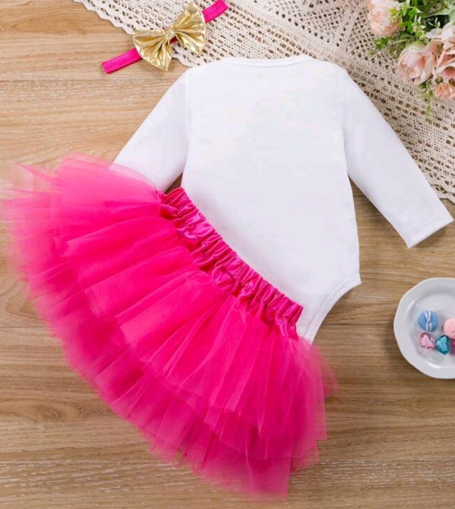 First Birthday Outfit will Long Sleeve, Cerise Pink Tutu and Headband
