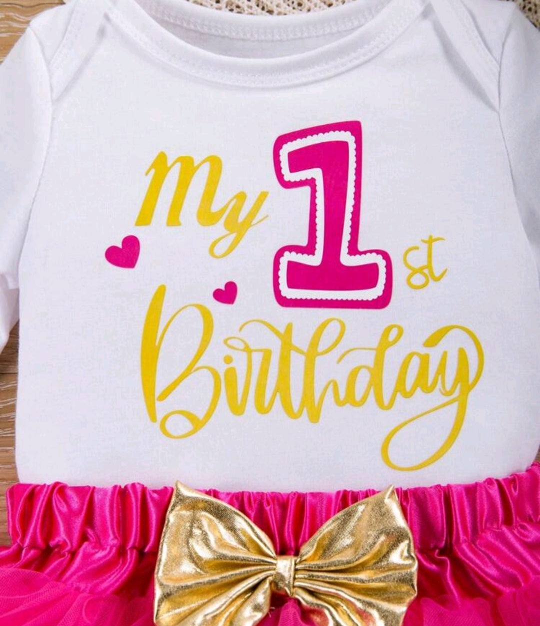First Birthday Outfit will Long Sleeve, Cerise Pink Tutu and Headband #10020023