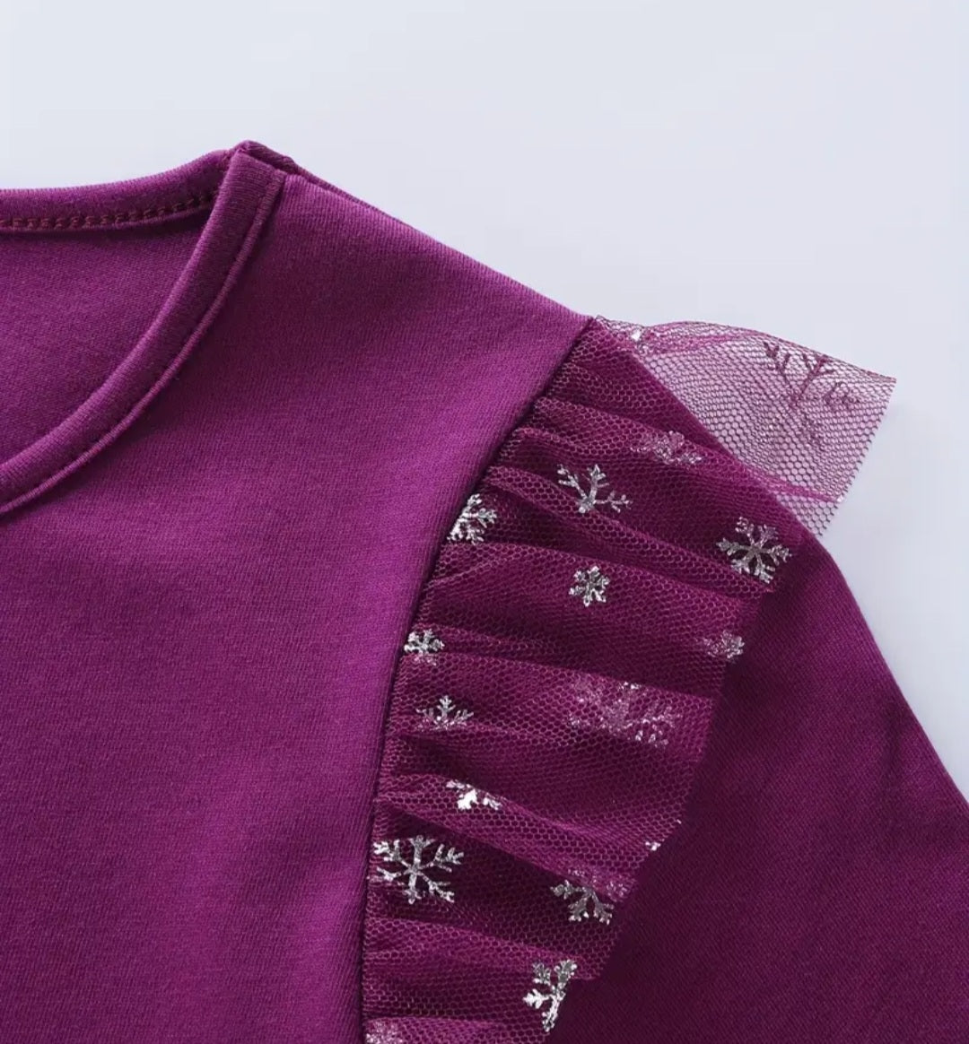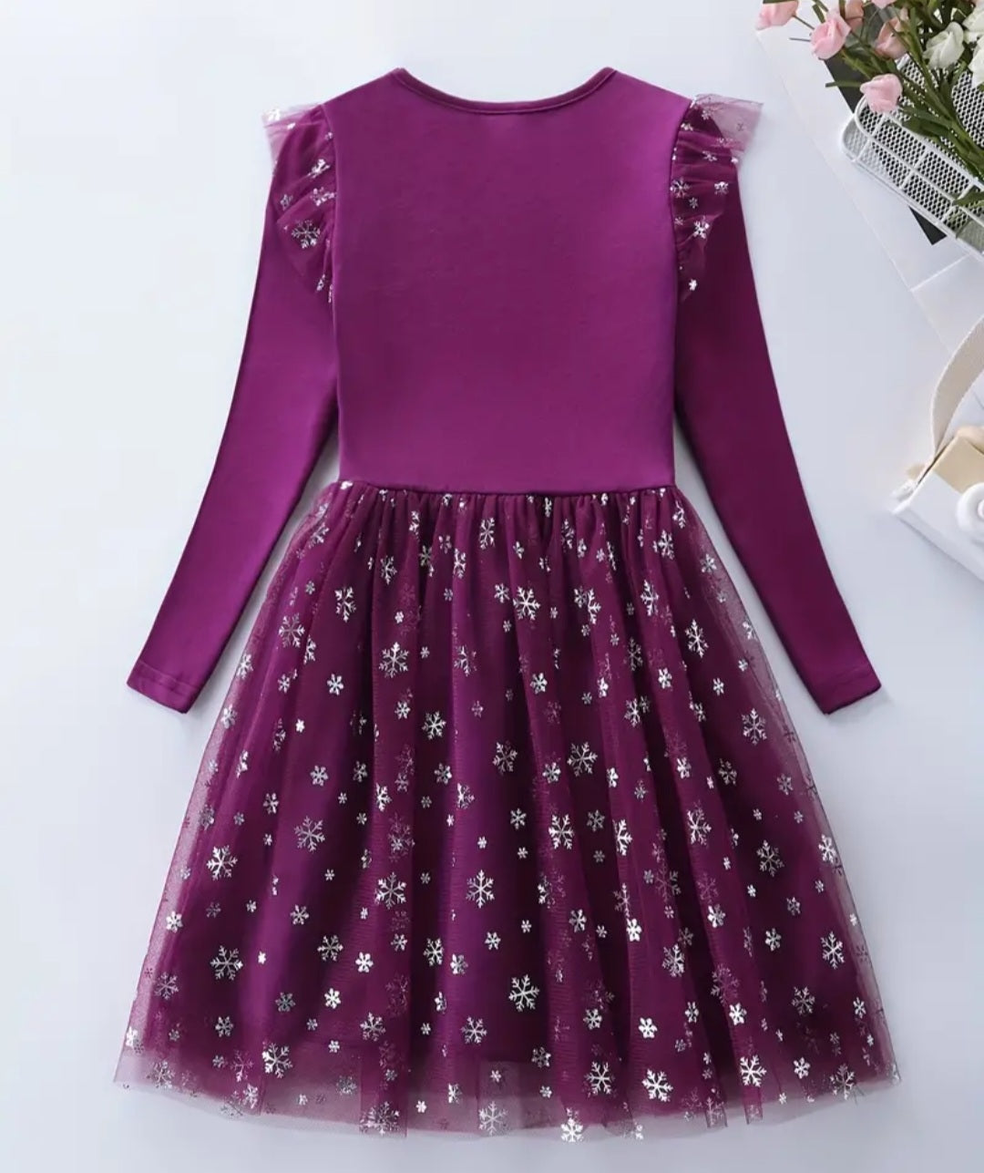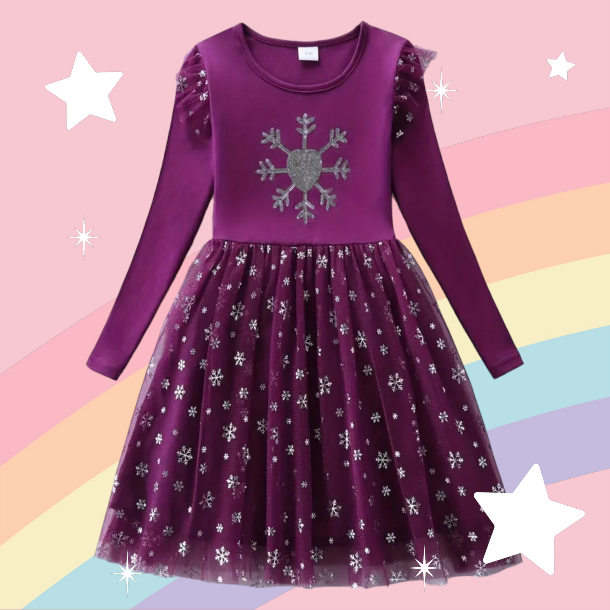 Plum Snow Princess Dress with Embroidered Snowflake #1002003
