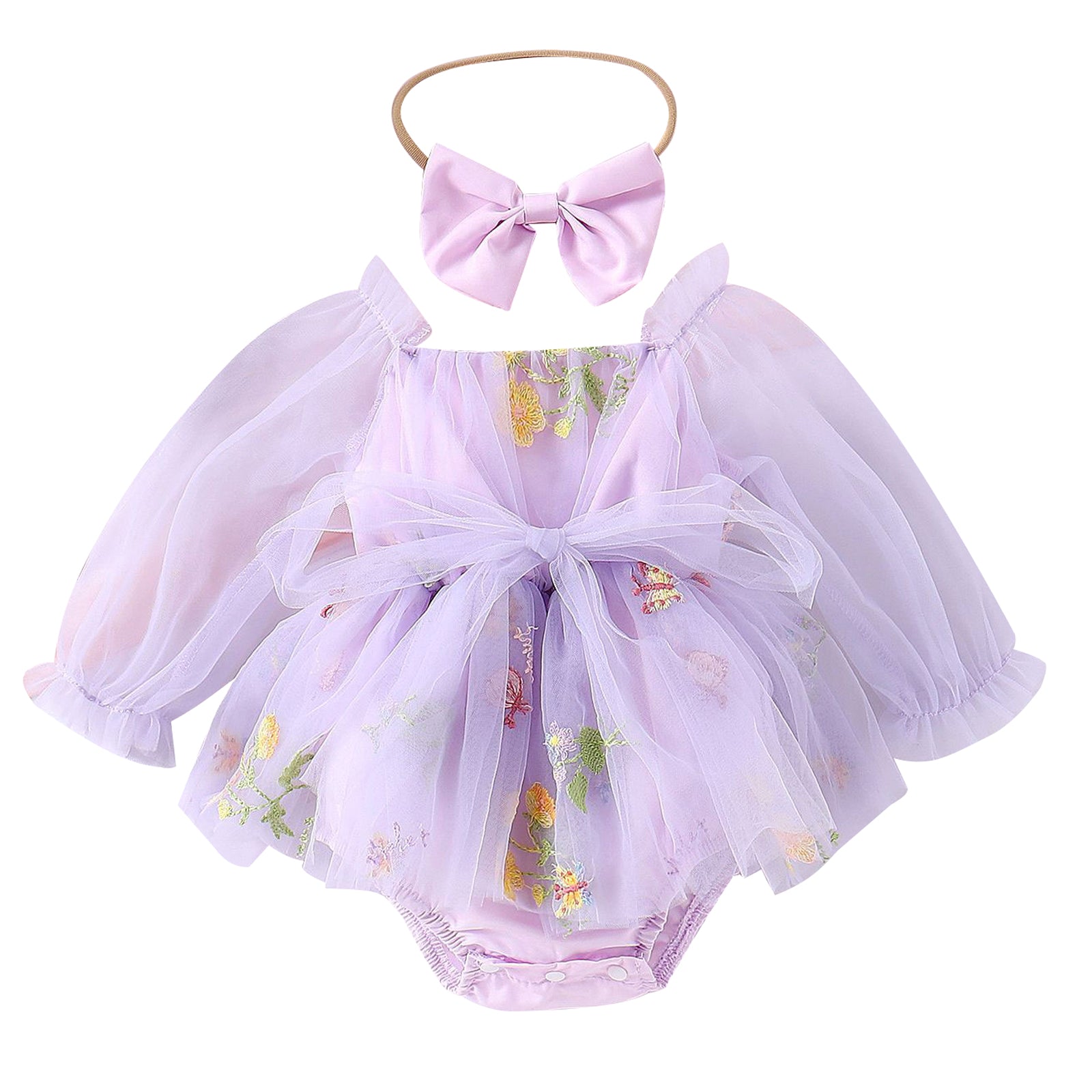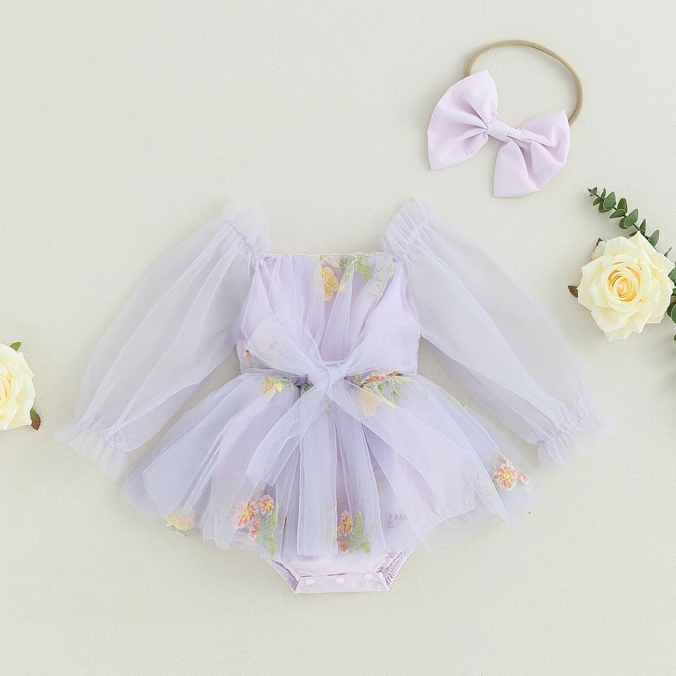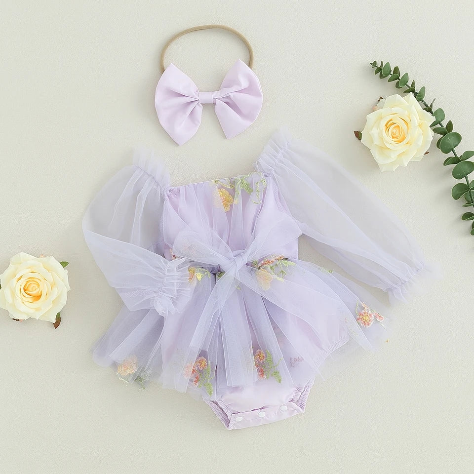Purple Embroidered Long Sleeve Romper and Headband #10020034