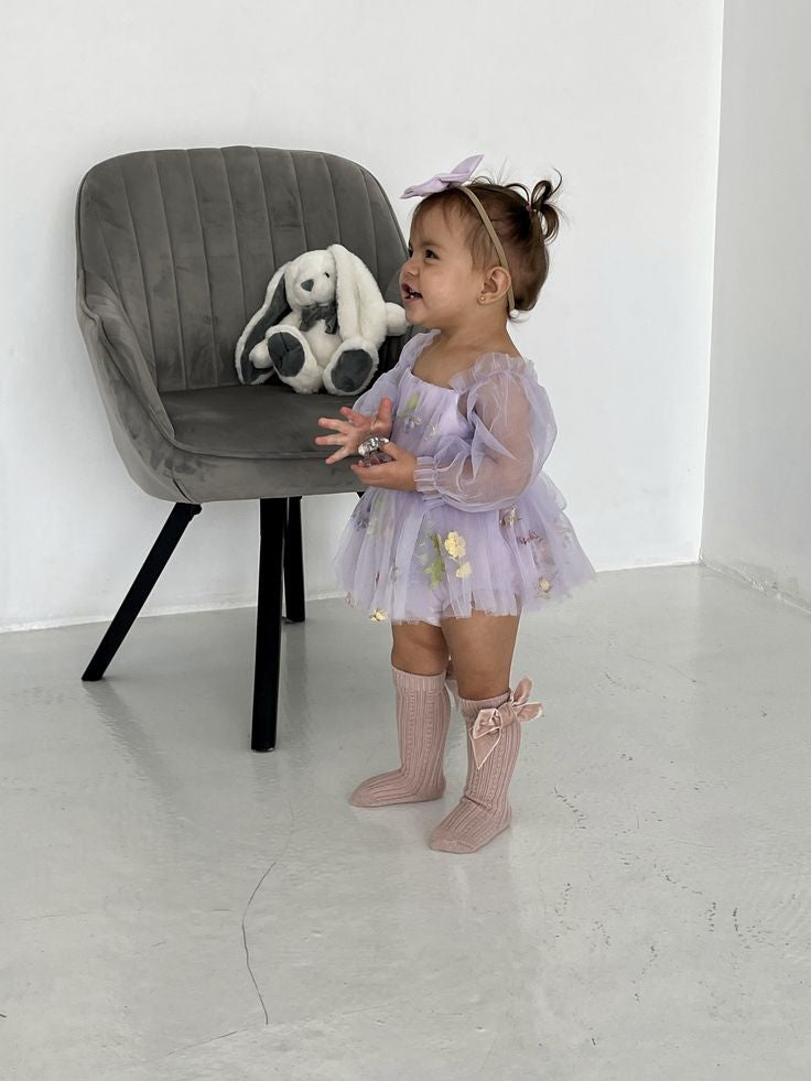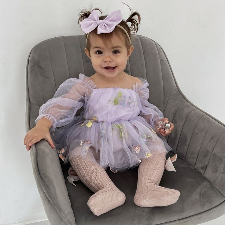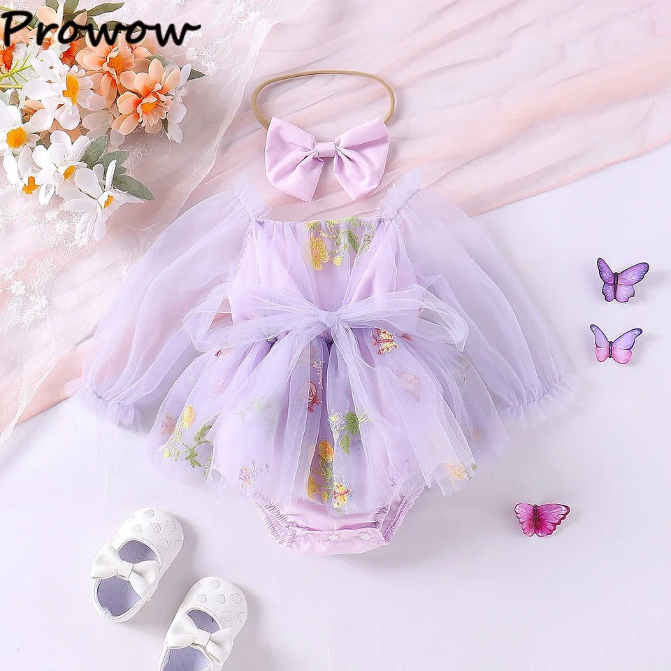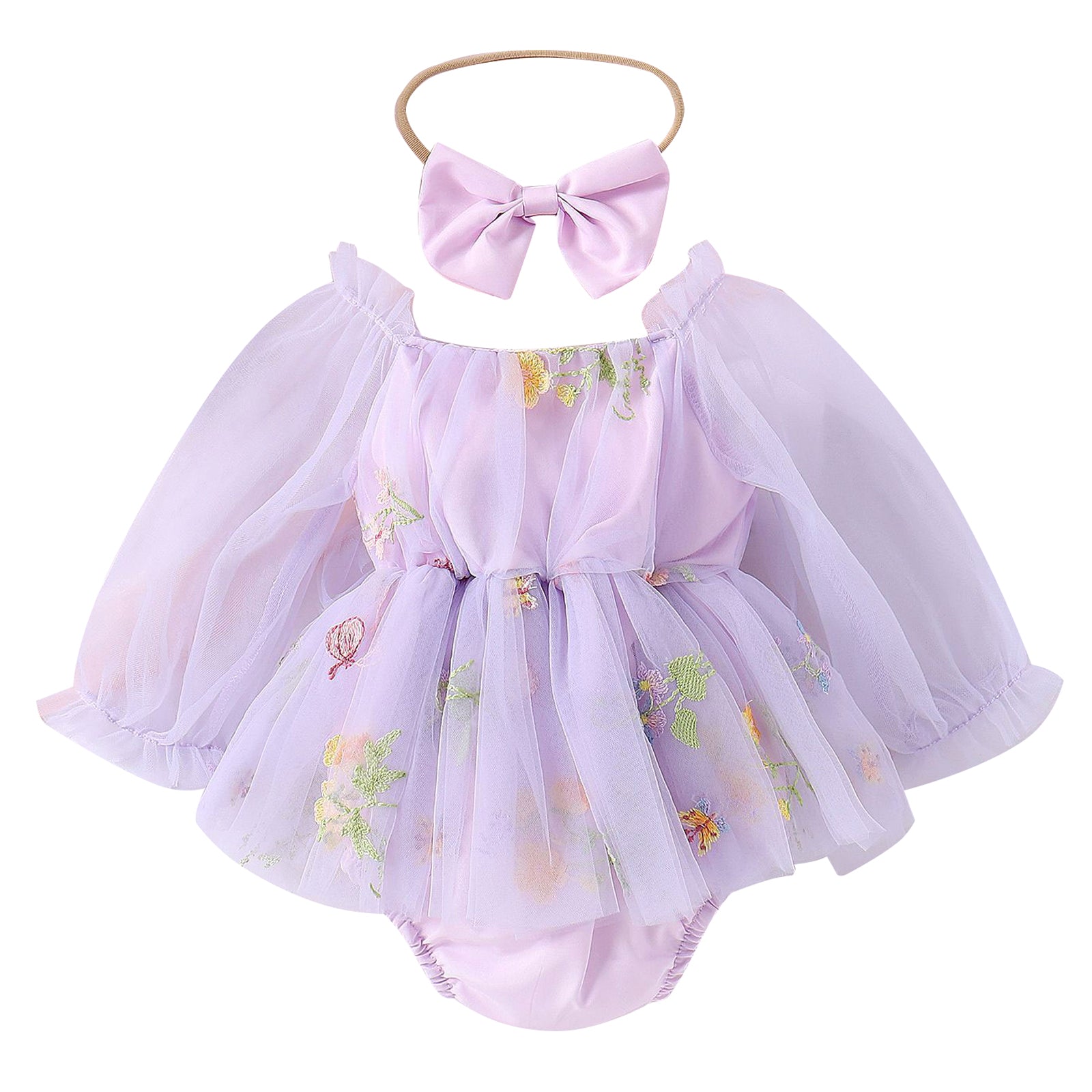 Purple Embroidered Long Sleeve Romper and Headband #10020034