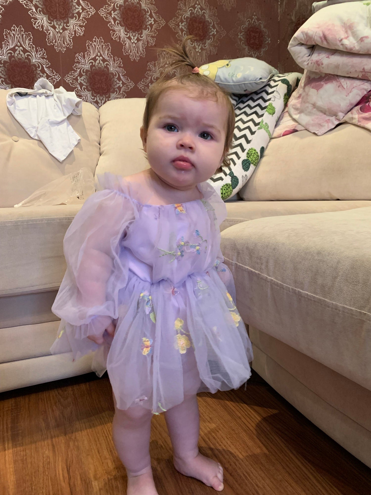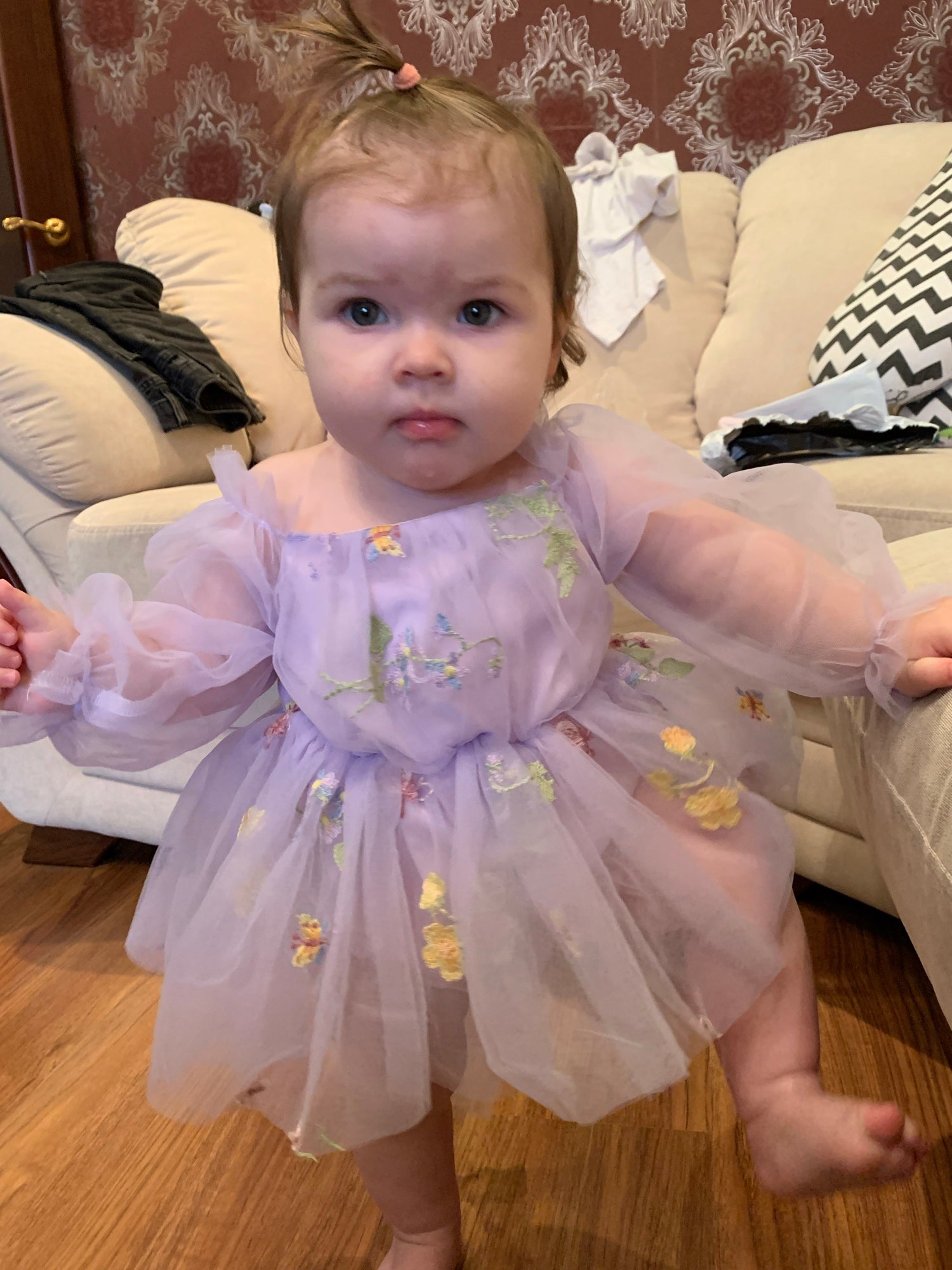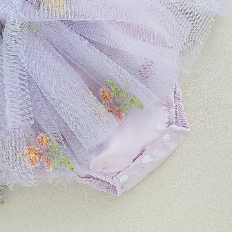 Purple Embroidered Long Sleeve Romper and Headband