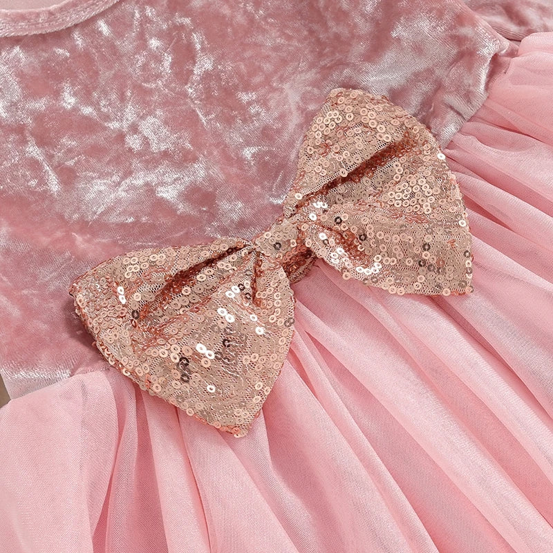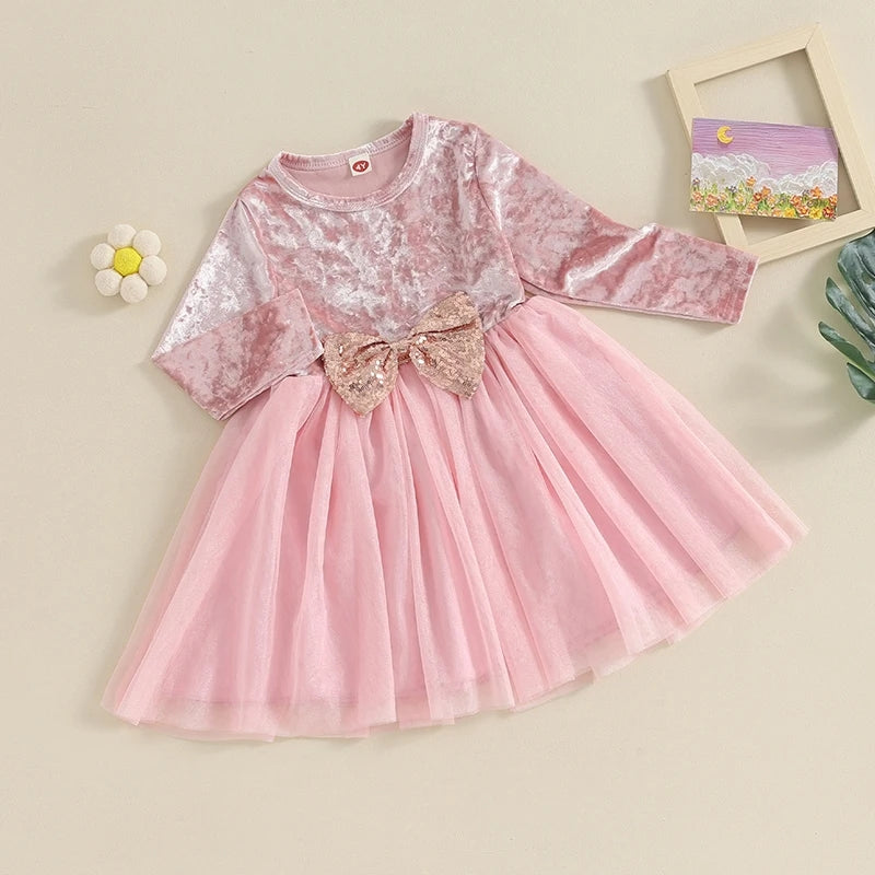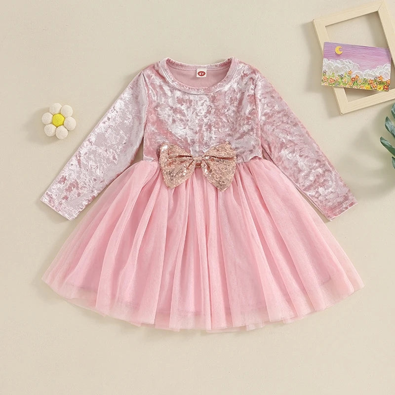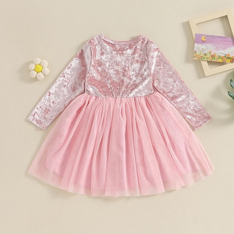 Pink Velvet and Mesh long Sleeve Dress #10020041