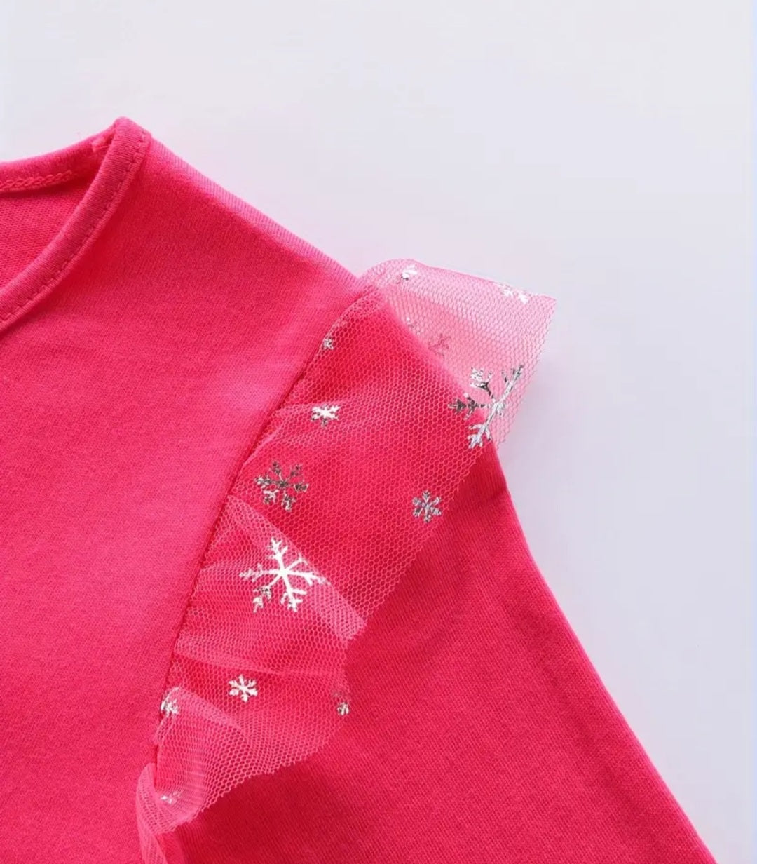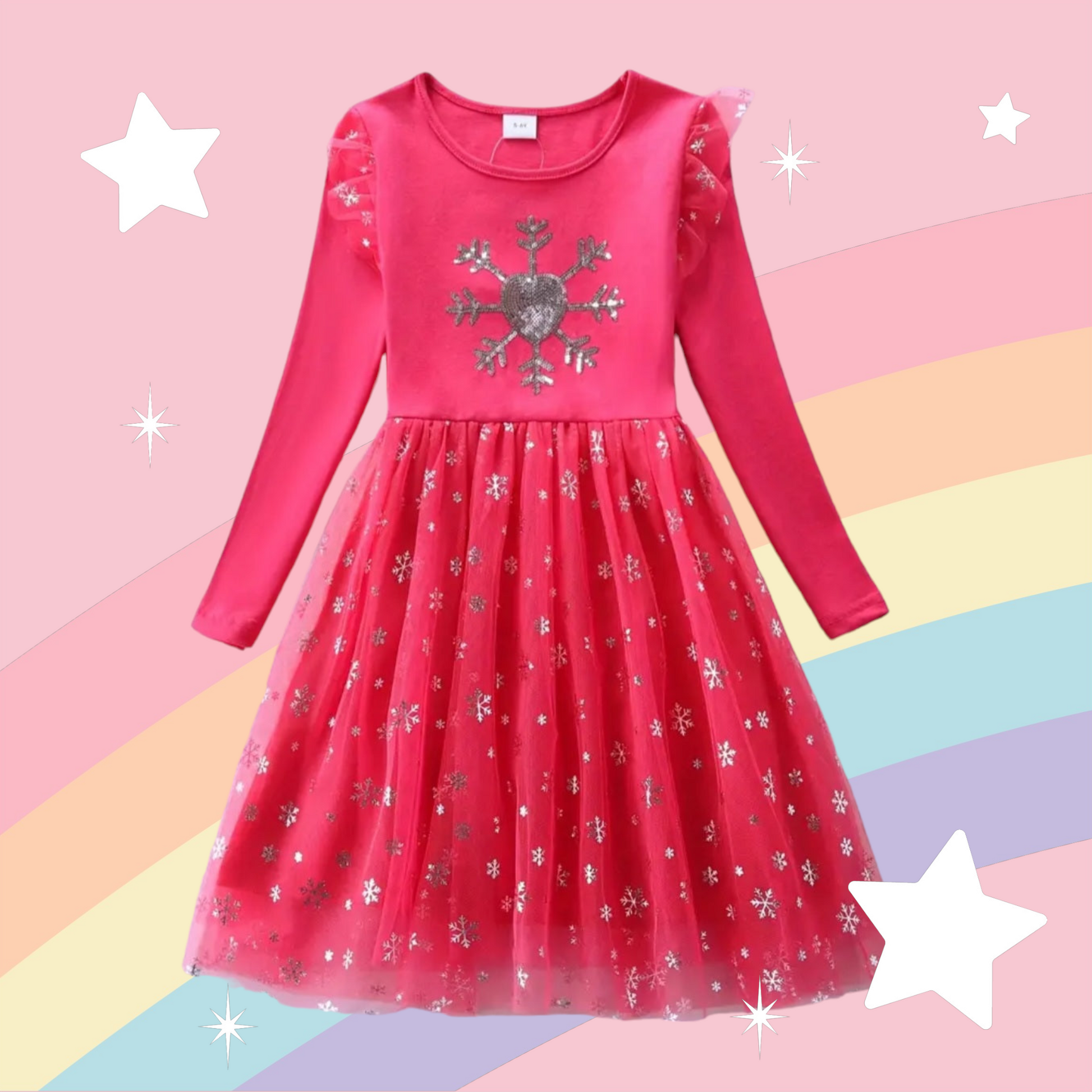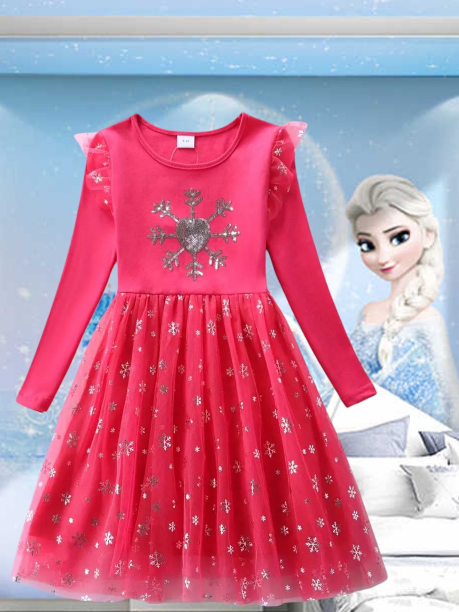 Coral Snow Princess Dress with Embroidered Snowflake #1002006