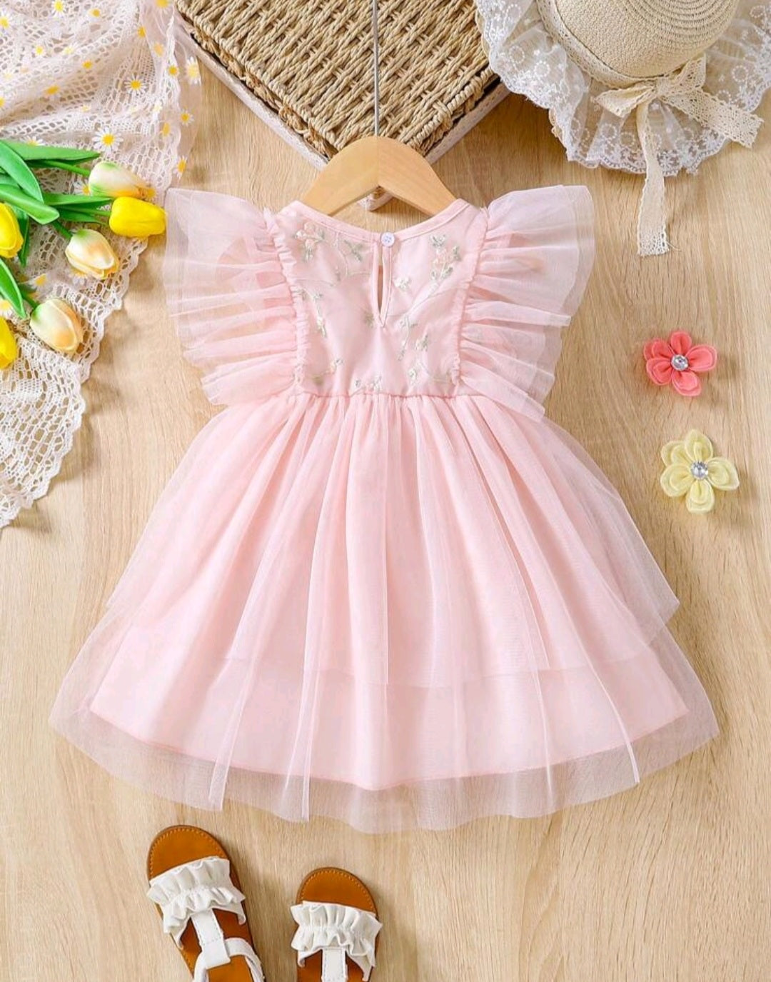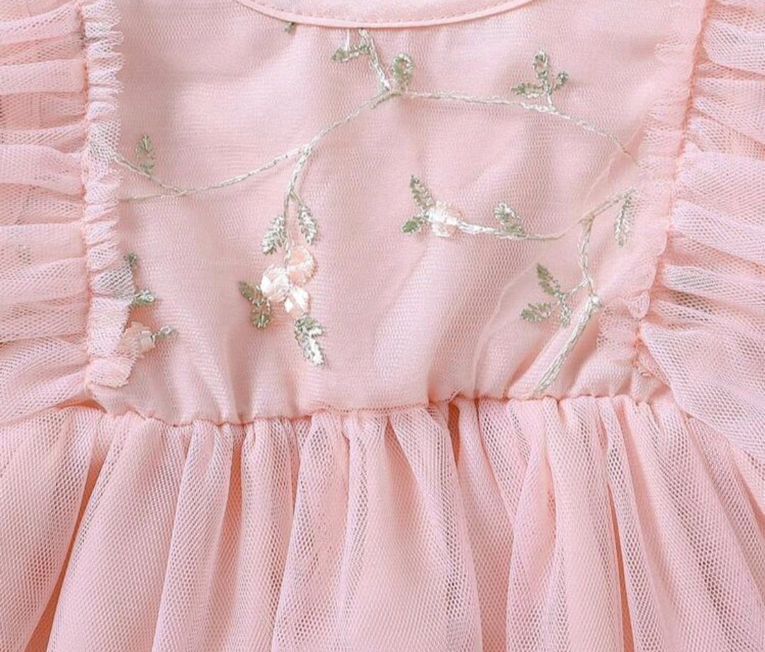 Pink Tulle Embroidered Bust Dress #10021
