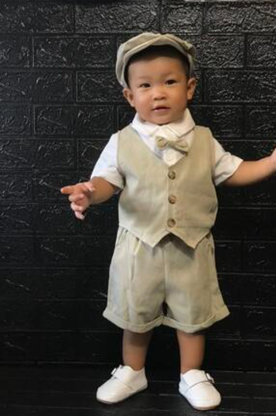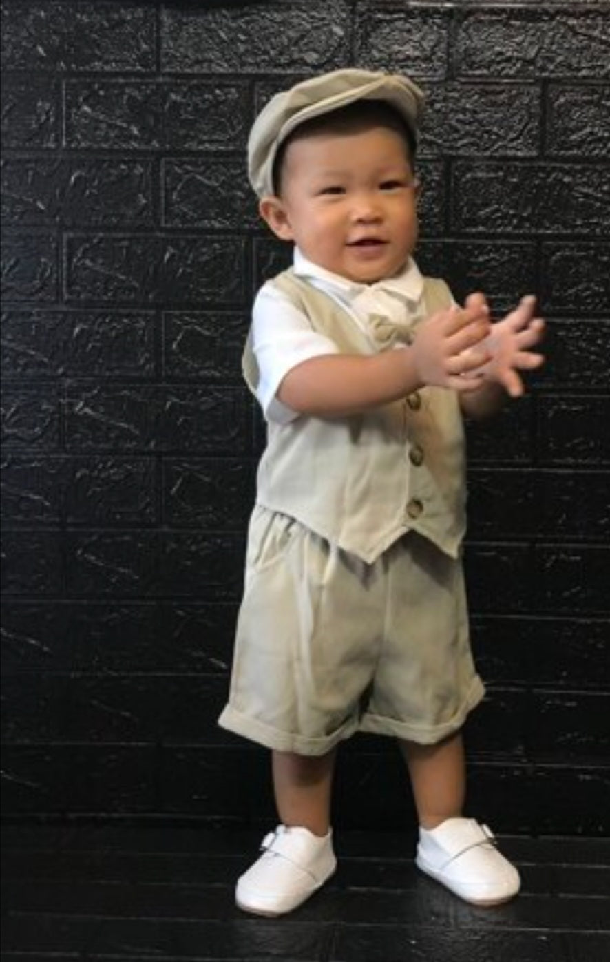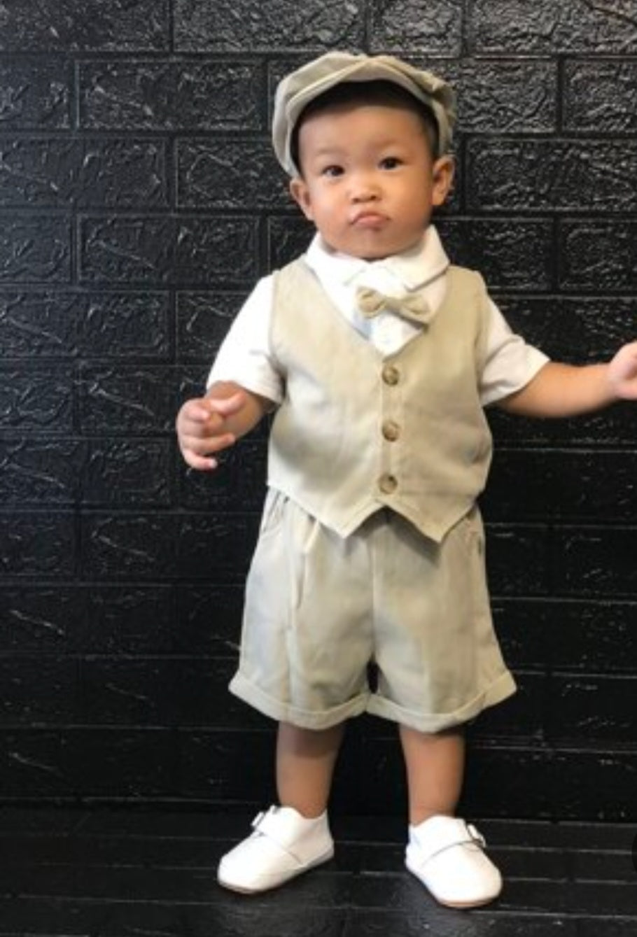 5PCS Gentleman Suit Beidge and White.