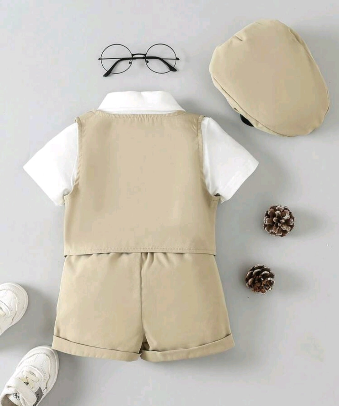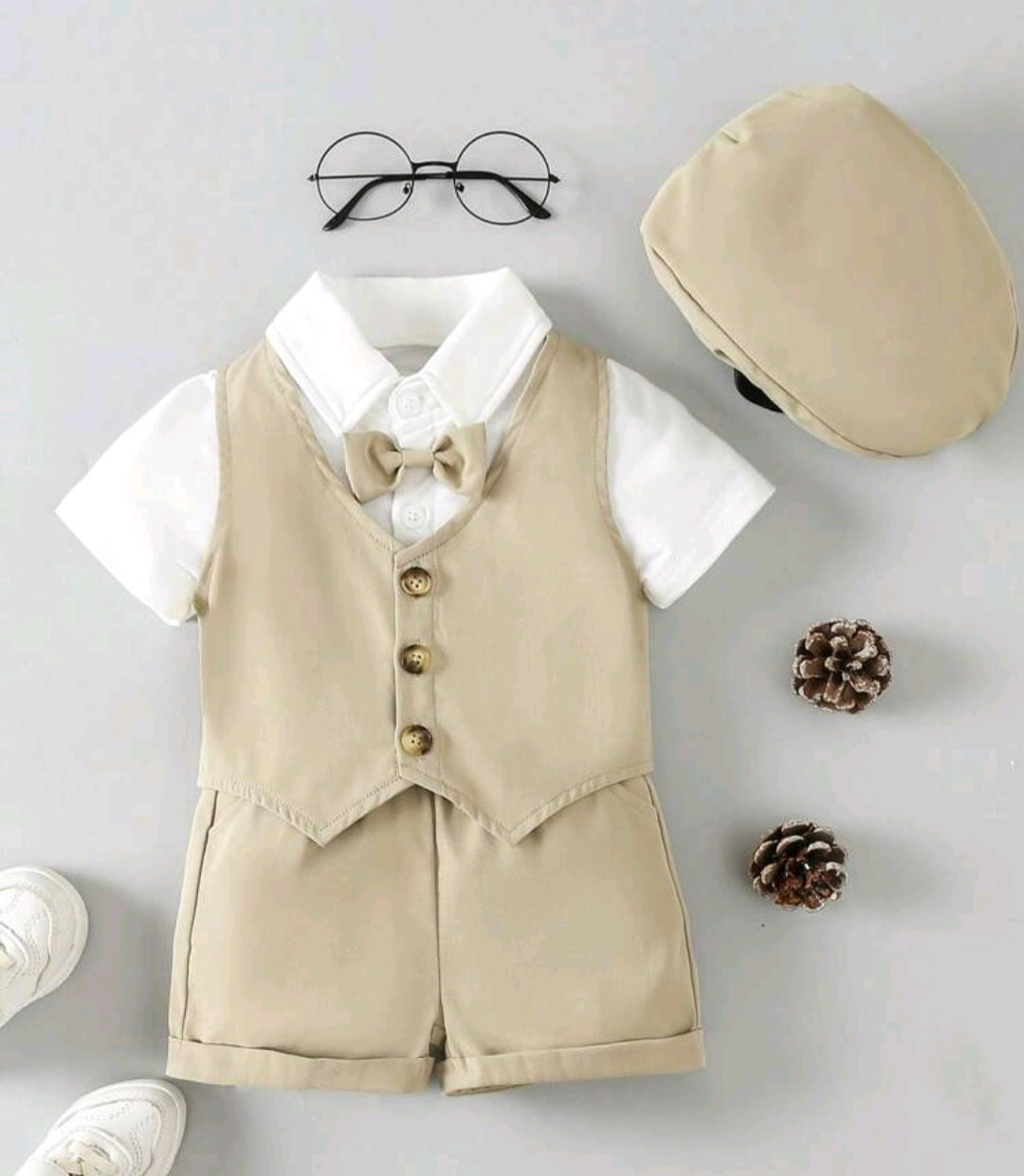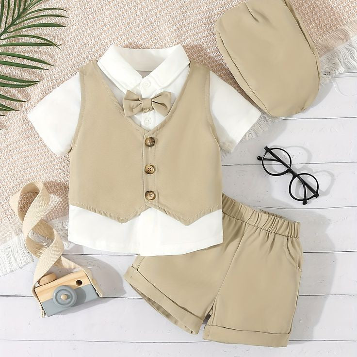 5PCS Gentleman Suit Beidge and White.