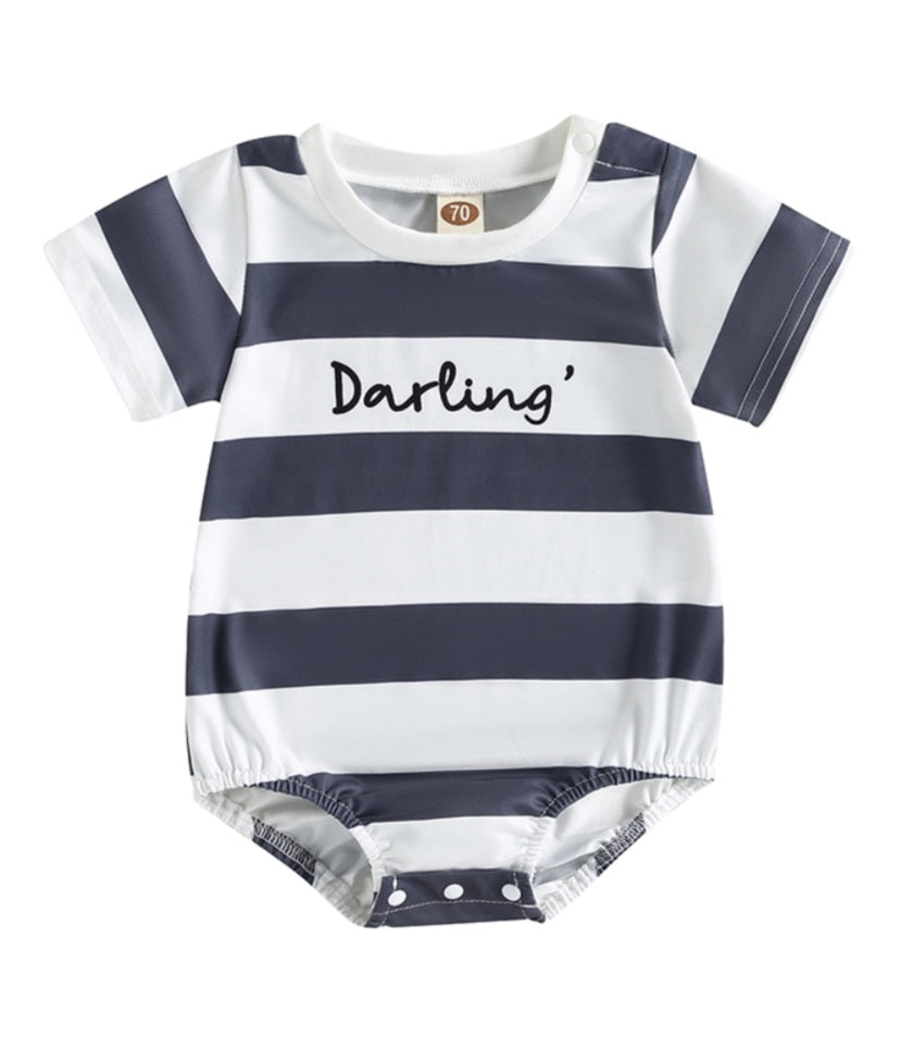 Darling Striped Romper Gray, Gender Neutral