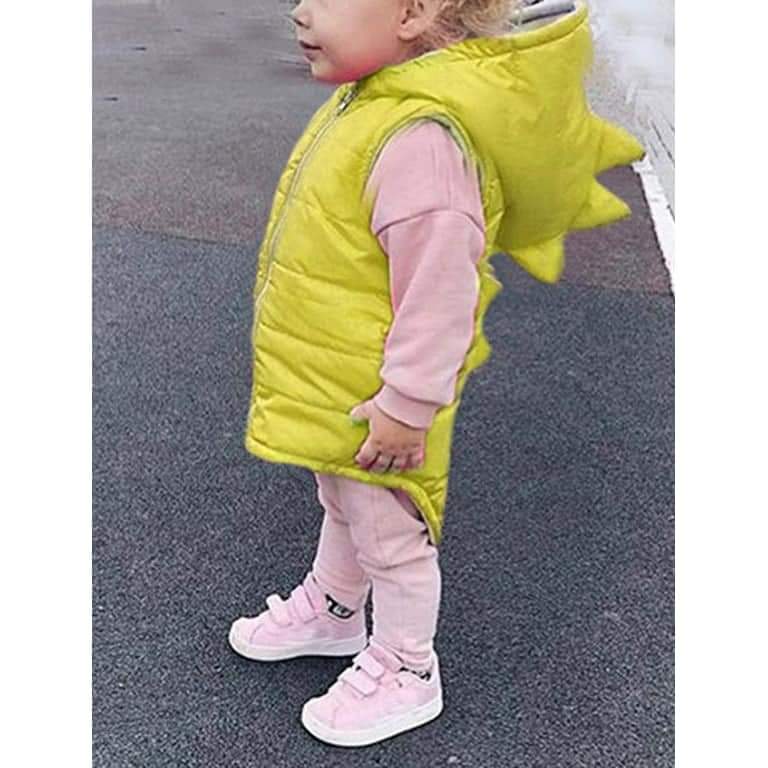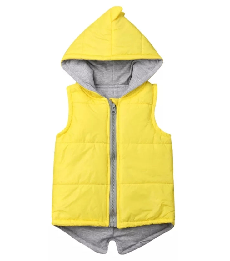 Yellow Dino Puffer Jacket, Sleeveless #2000257